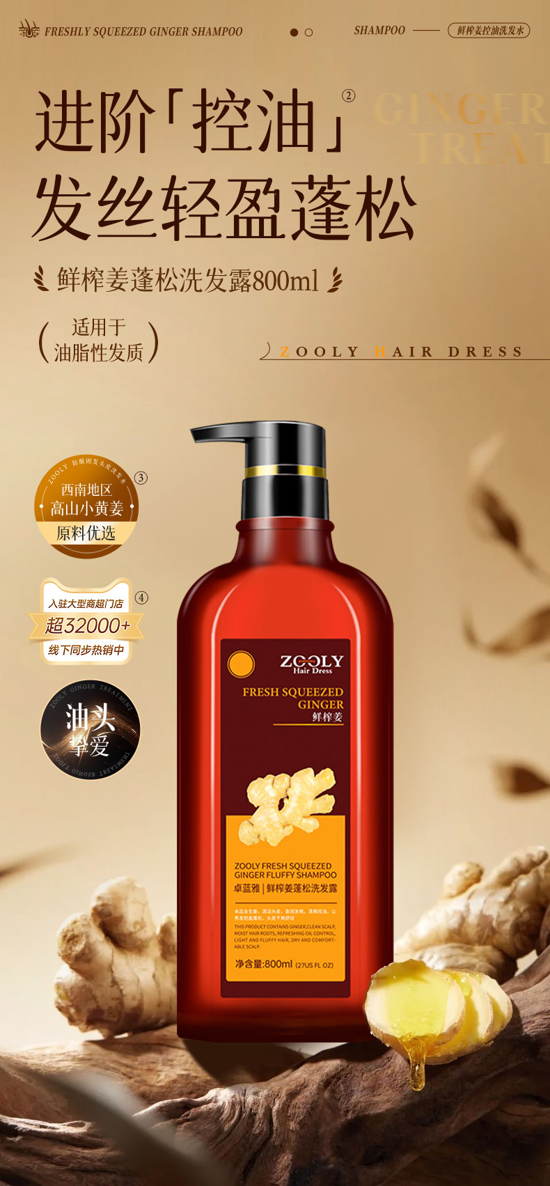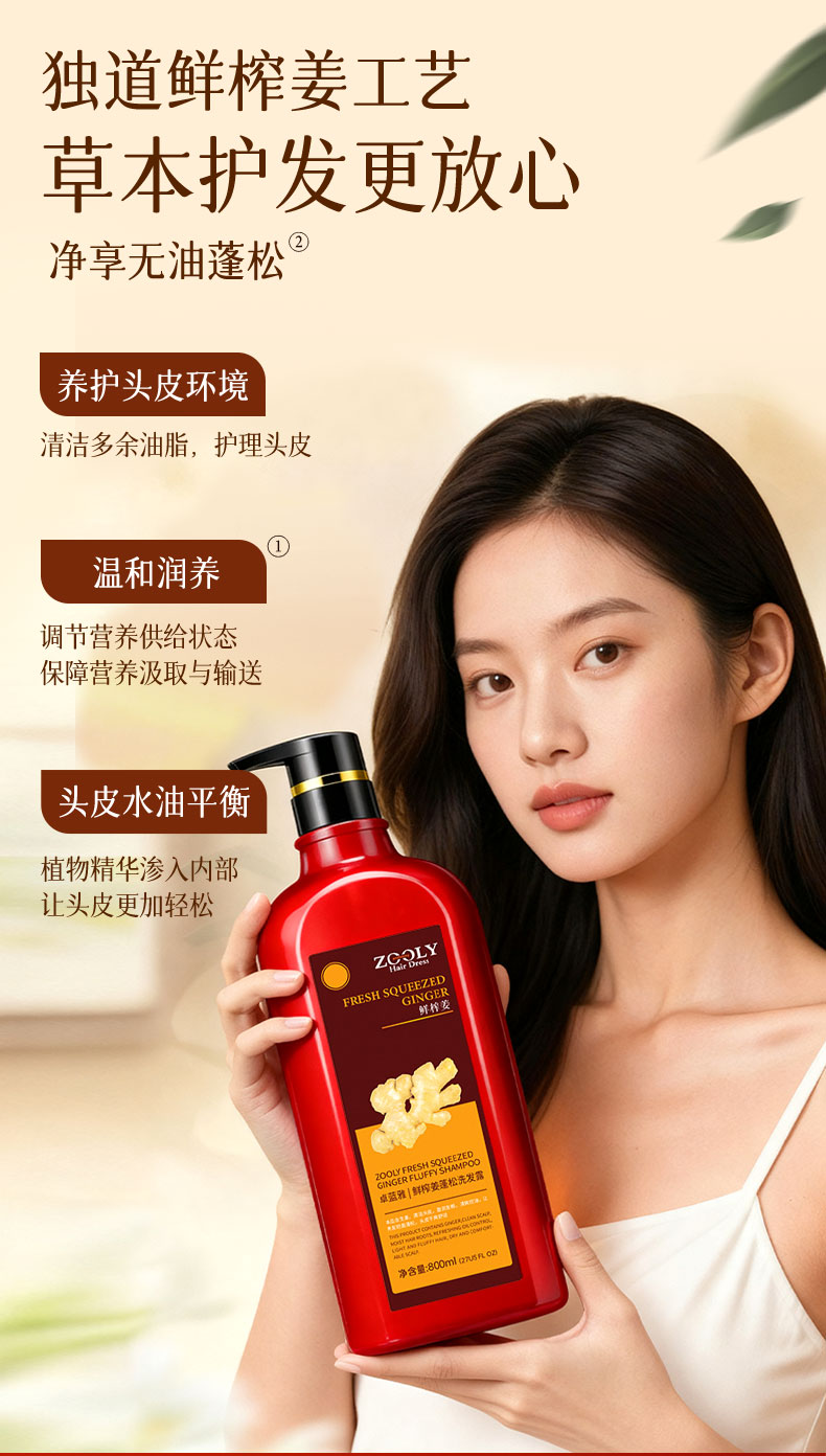 【超高性价比】鲜榨姜控油洗发水800ml 清爽控油 丰盈蓬松