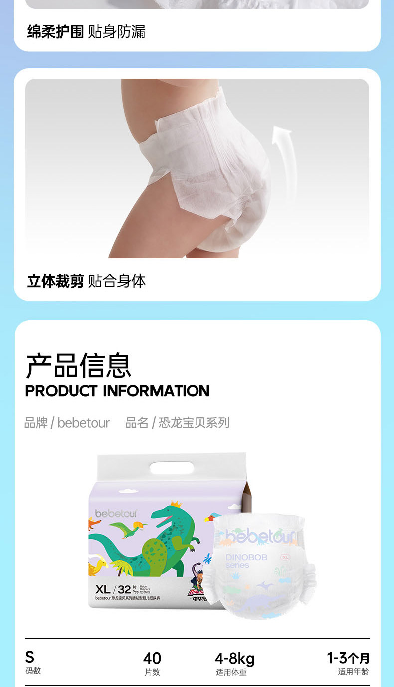 bebetour 恐龙宝贝系列尿不湿体验装5片