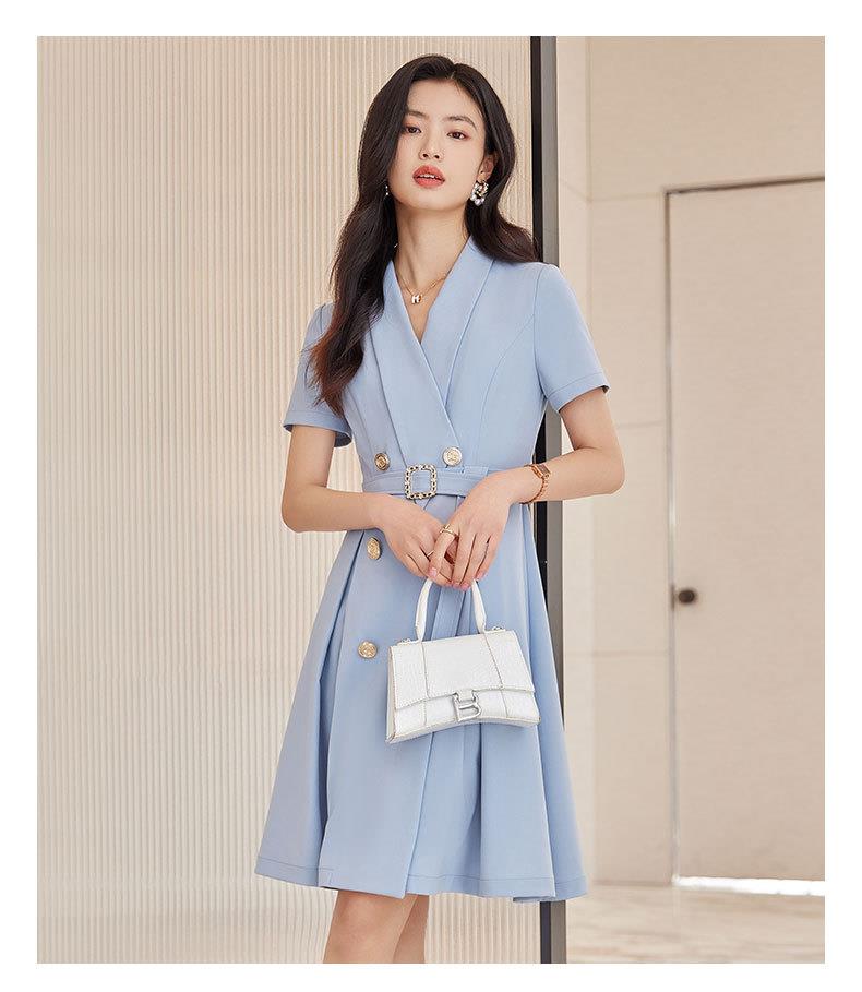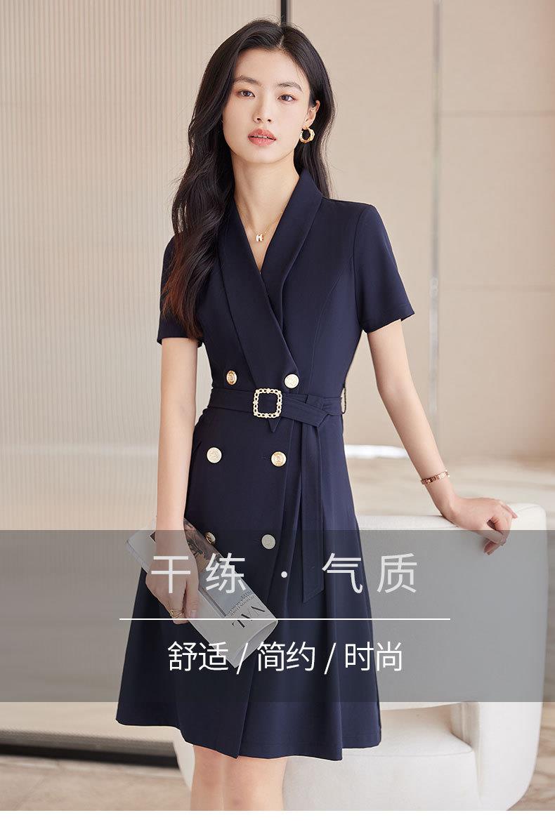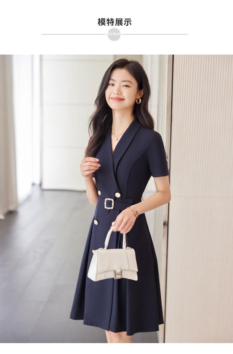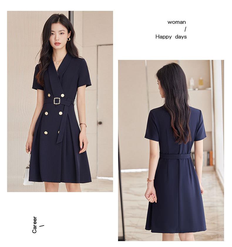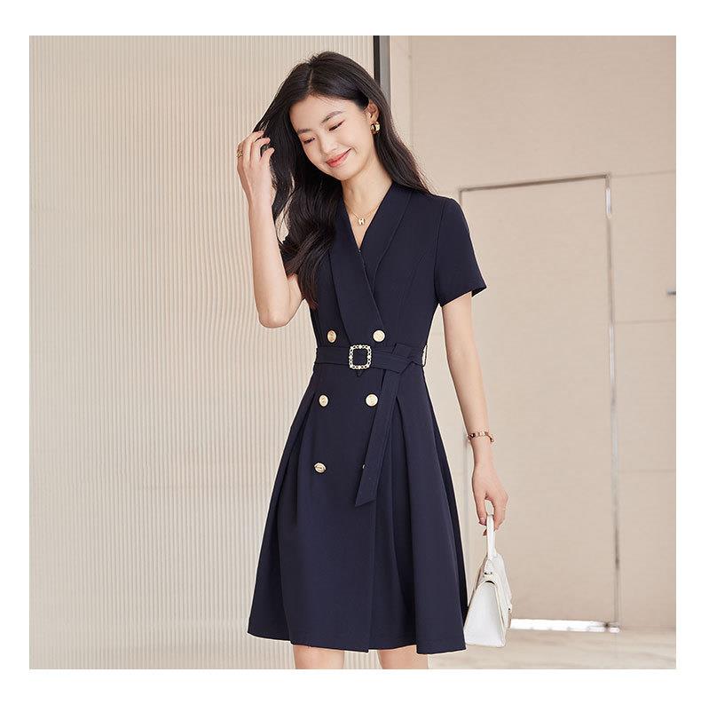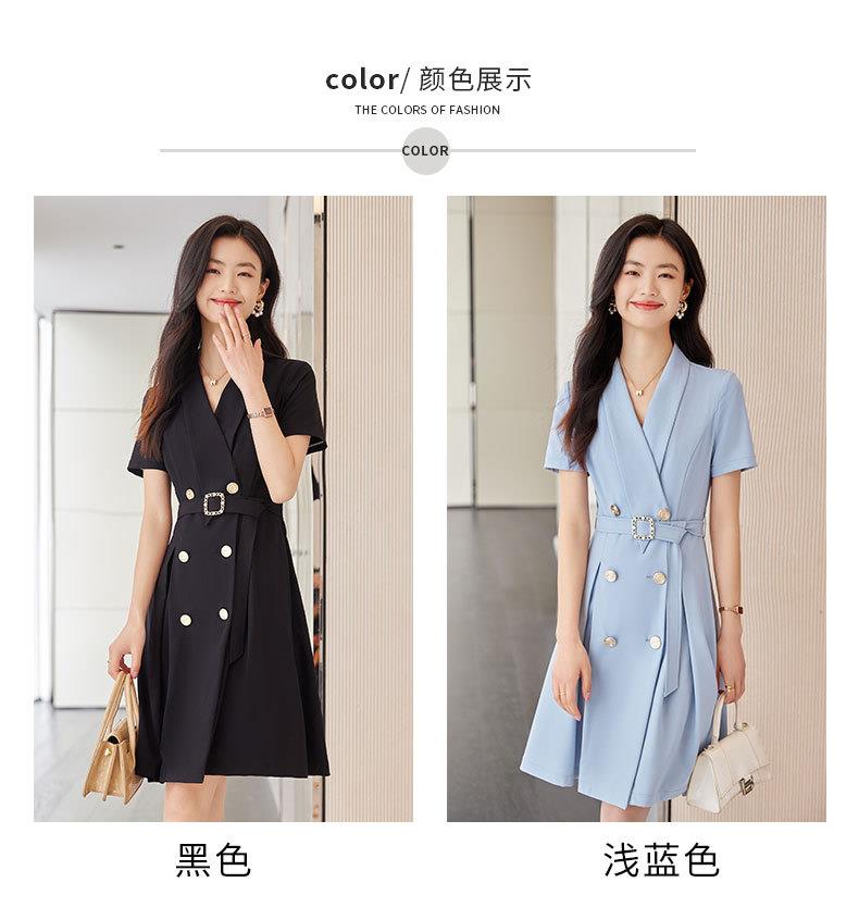 娜璐多 高级感短袖西装连衣裙女夏季时尚气质高腰裙子2023新款双排扣优雅