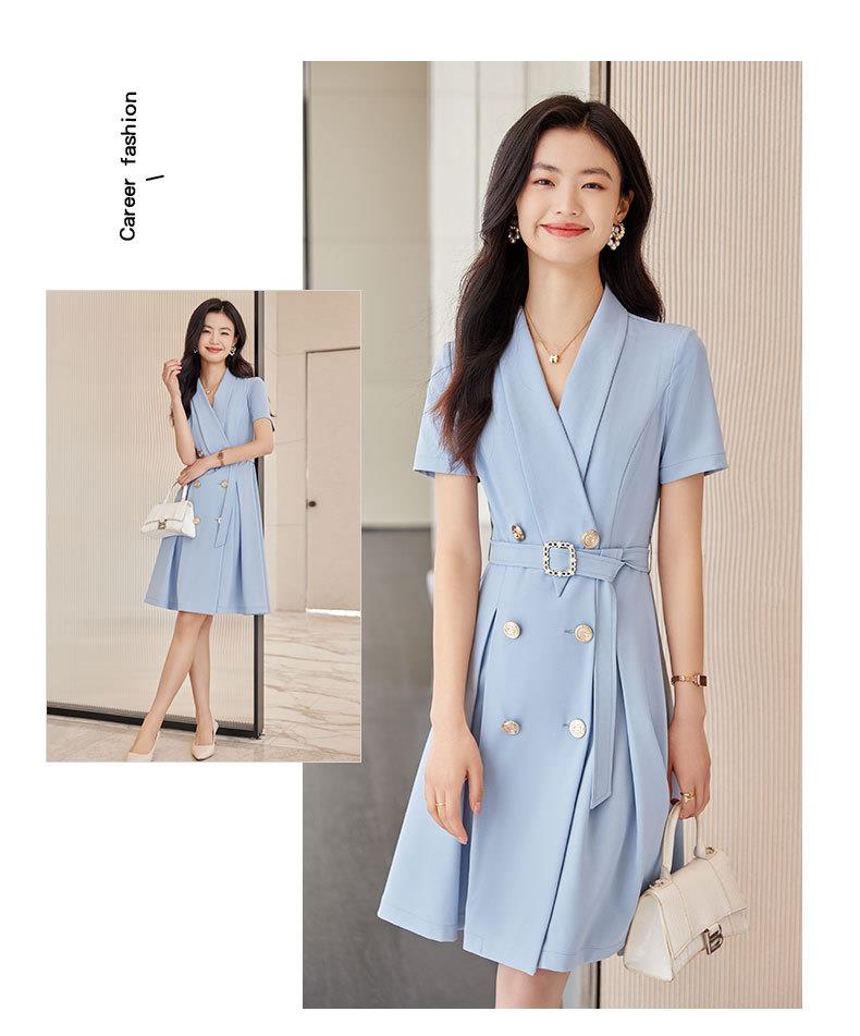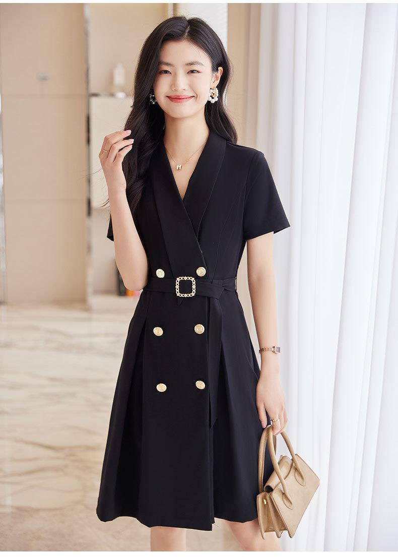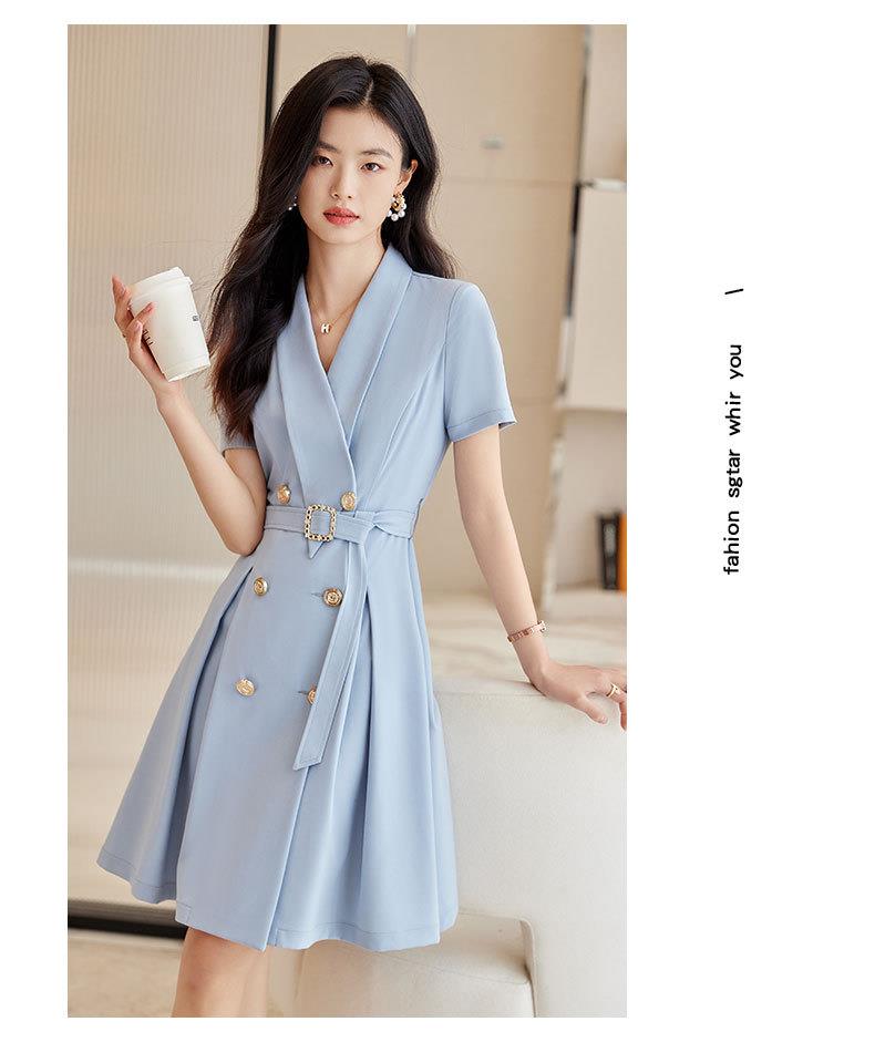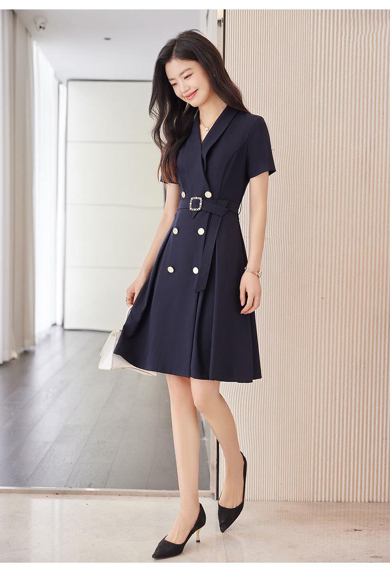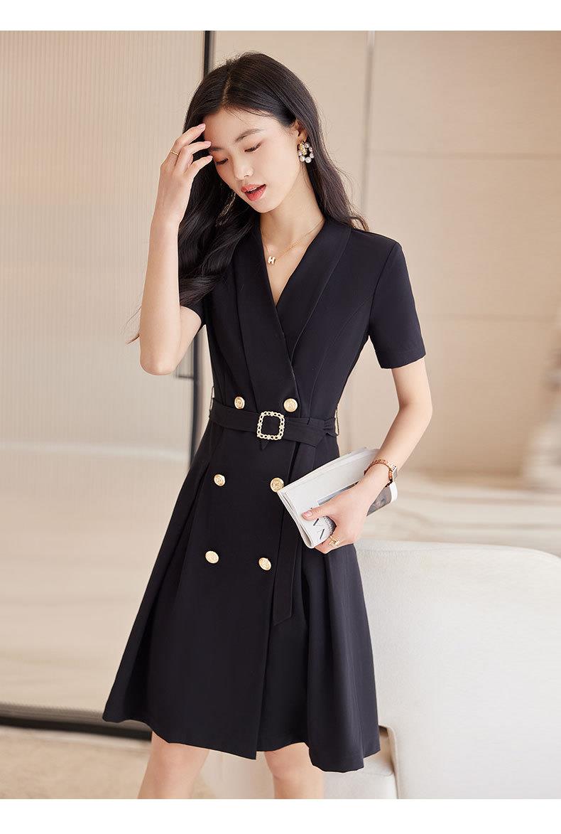 娜璐多 高级感短袖西装连衣裙女夏季时尚气质高腰裙子2023新款双排扣优雅