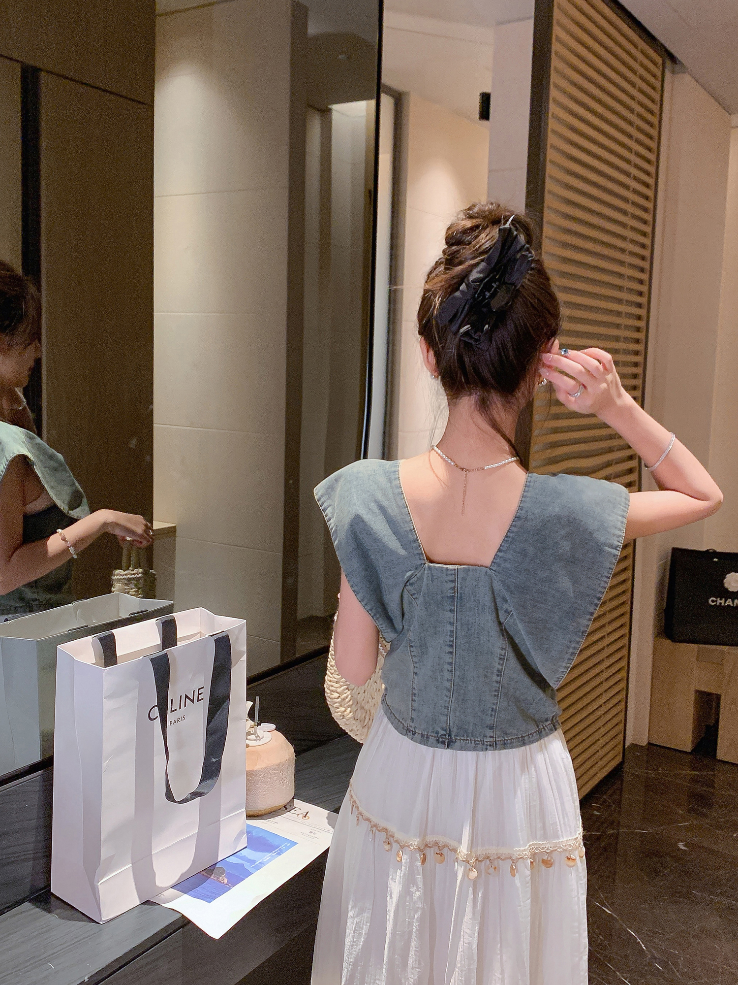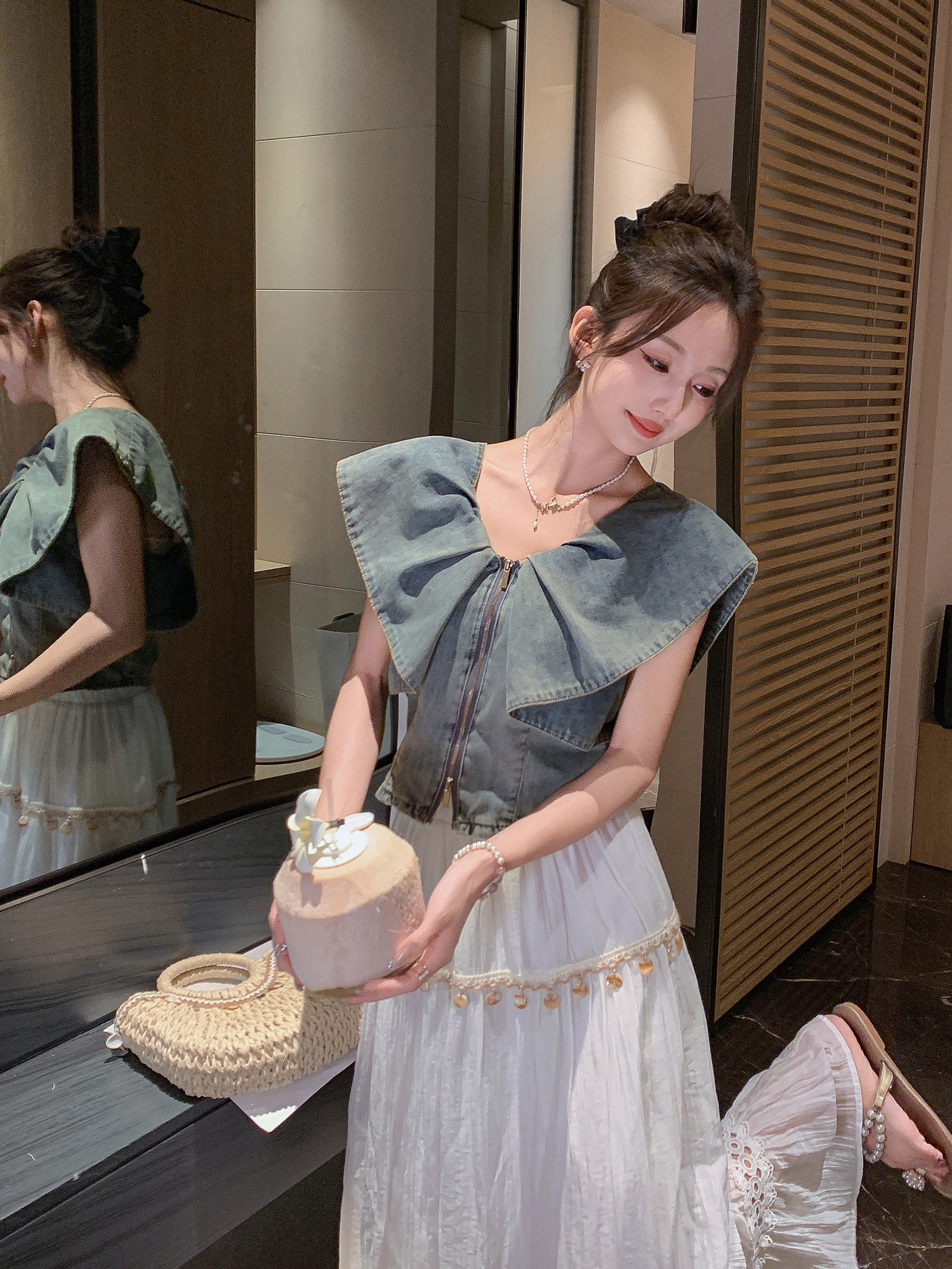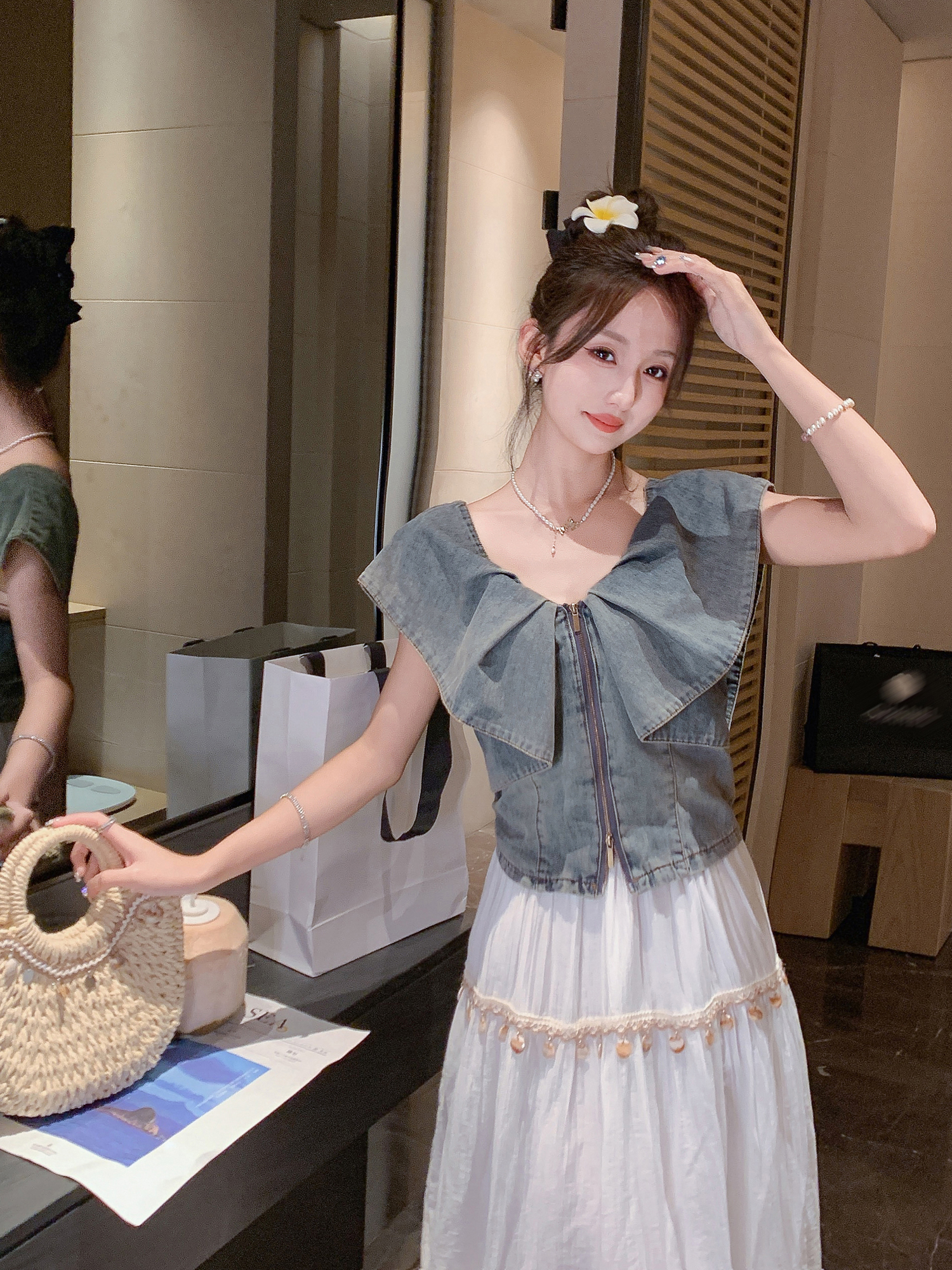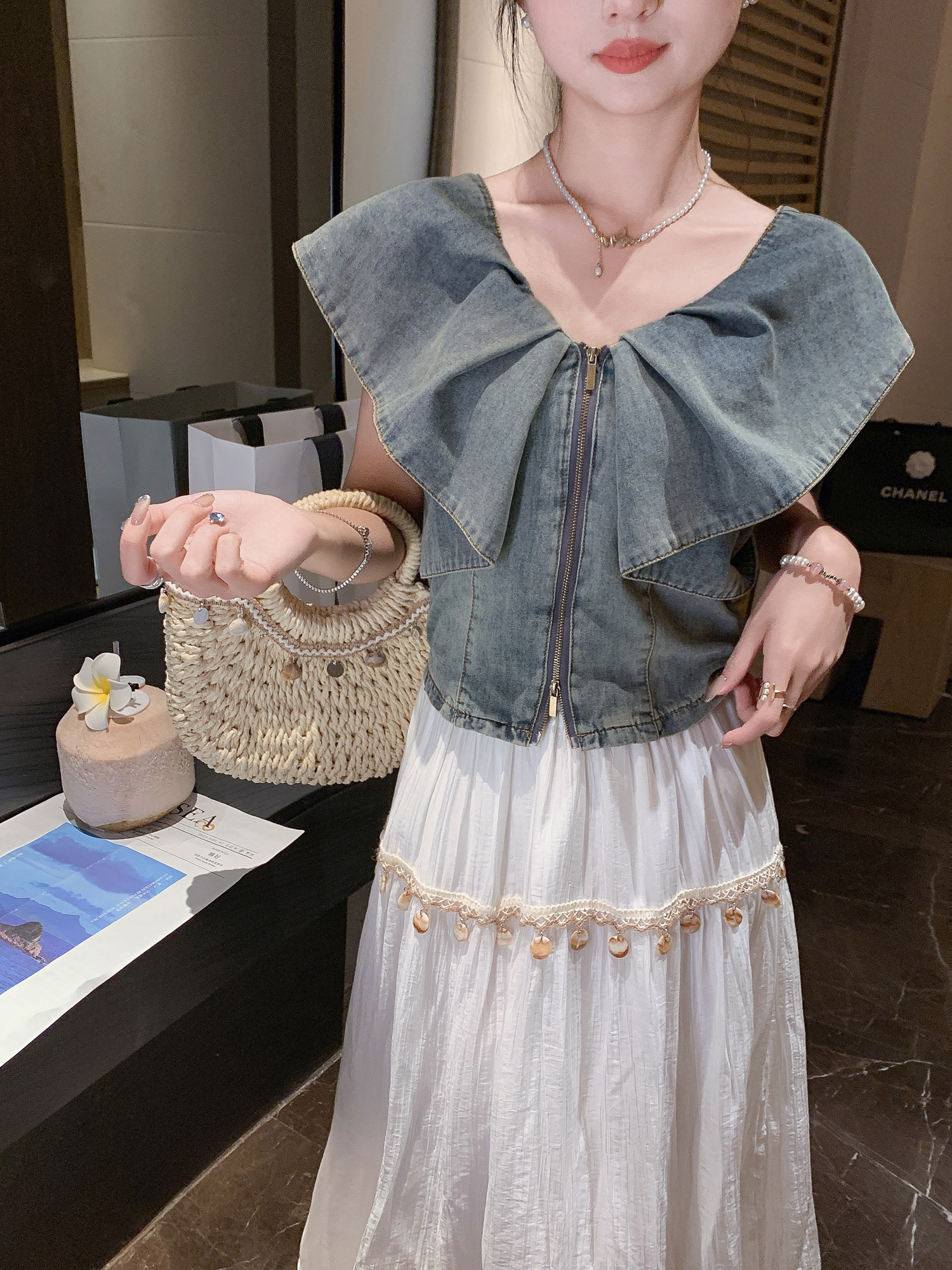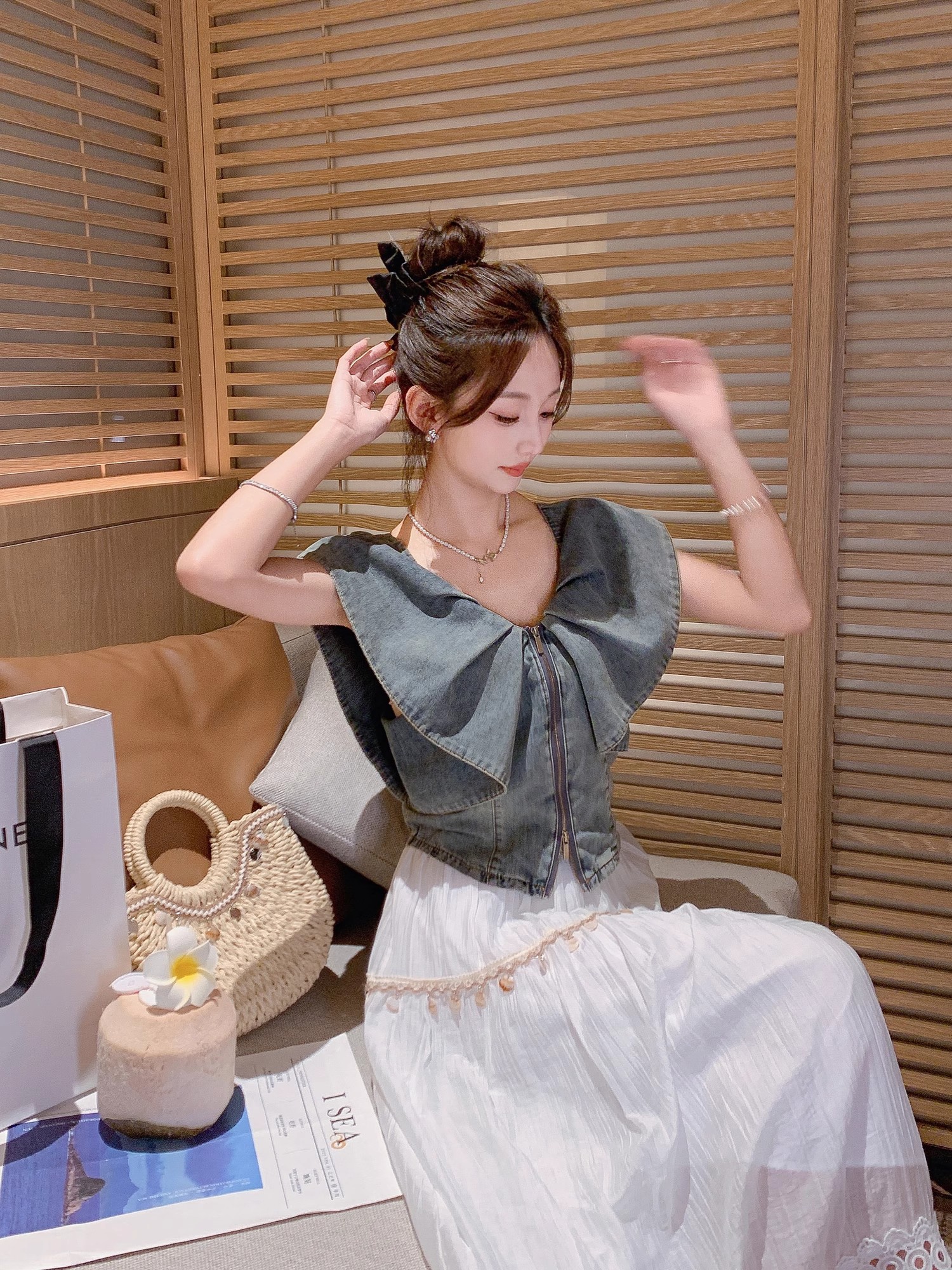 张心子【漫游日记】遮拜拜肉复古风气质显瘦牛仔上衣 U2505021