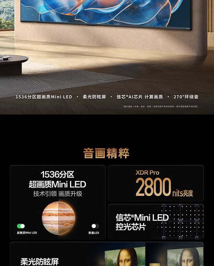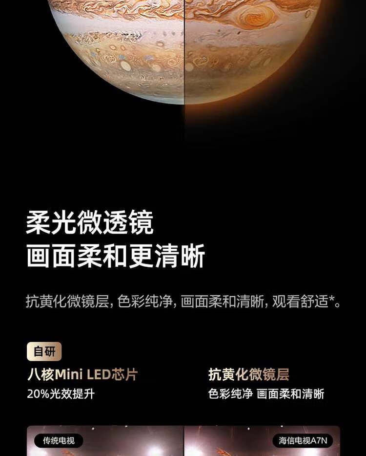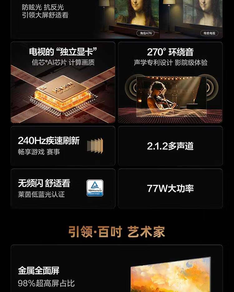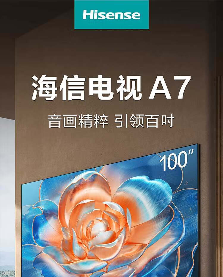 海信(Hisense)100英寸 平板电视 100A7N 玄武锖 1536分区超画质Mini LED 柔光防眩屏 240Hz疾速刷新 4+128GB