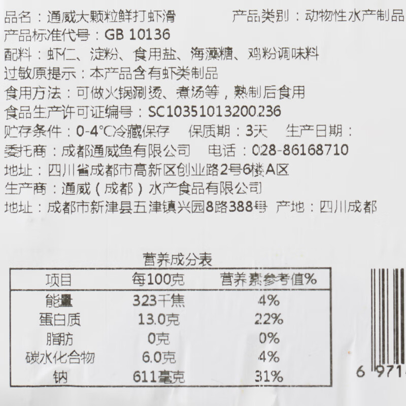 通威鲜打虾滑150g【半成品—需加熟食用】