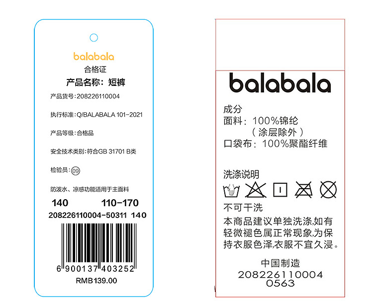 【balaOne】巴拉巴拉童装女童短裤儿童裤子2026夏新款防泼水凉感