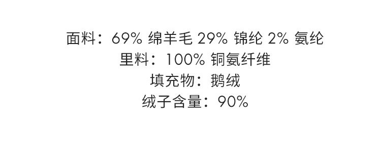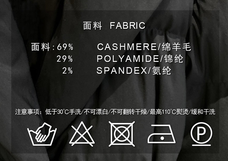 面料:69% 绵羊毛 29% 锦纶 2%氨纶