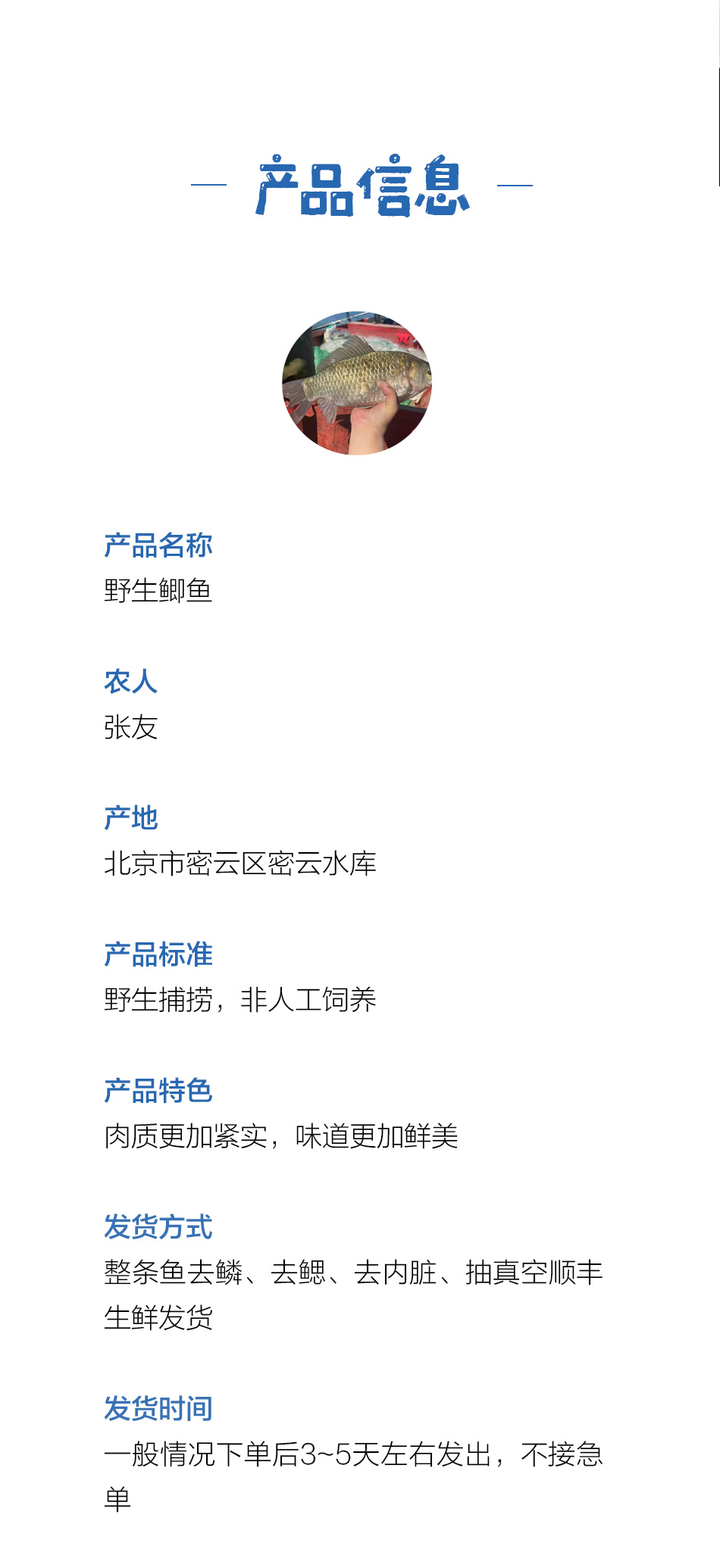 【野生鲫鱼】密云水库野生鱼(基地直发-顺丰包邮)| 多种规格冷鲜发货,来自北京密云水库(北京重要饮用水源),生产者:张友【合作生产,公平贸易】