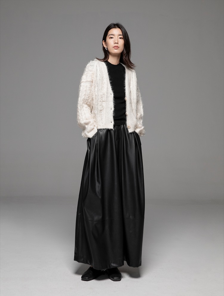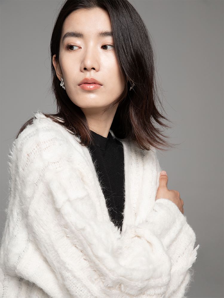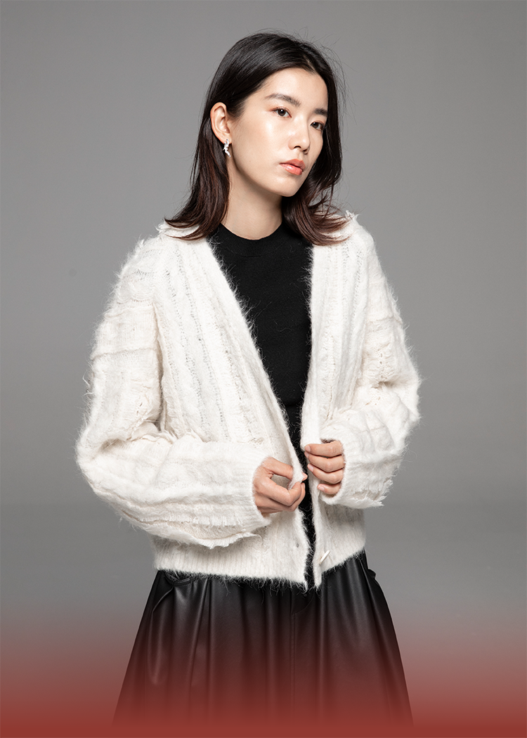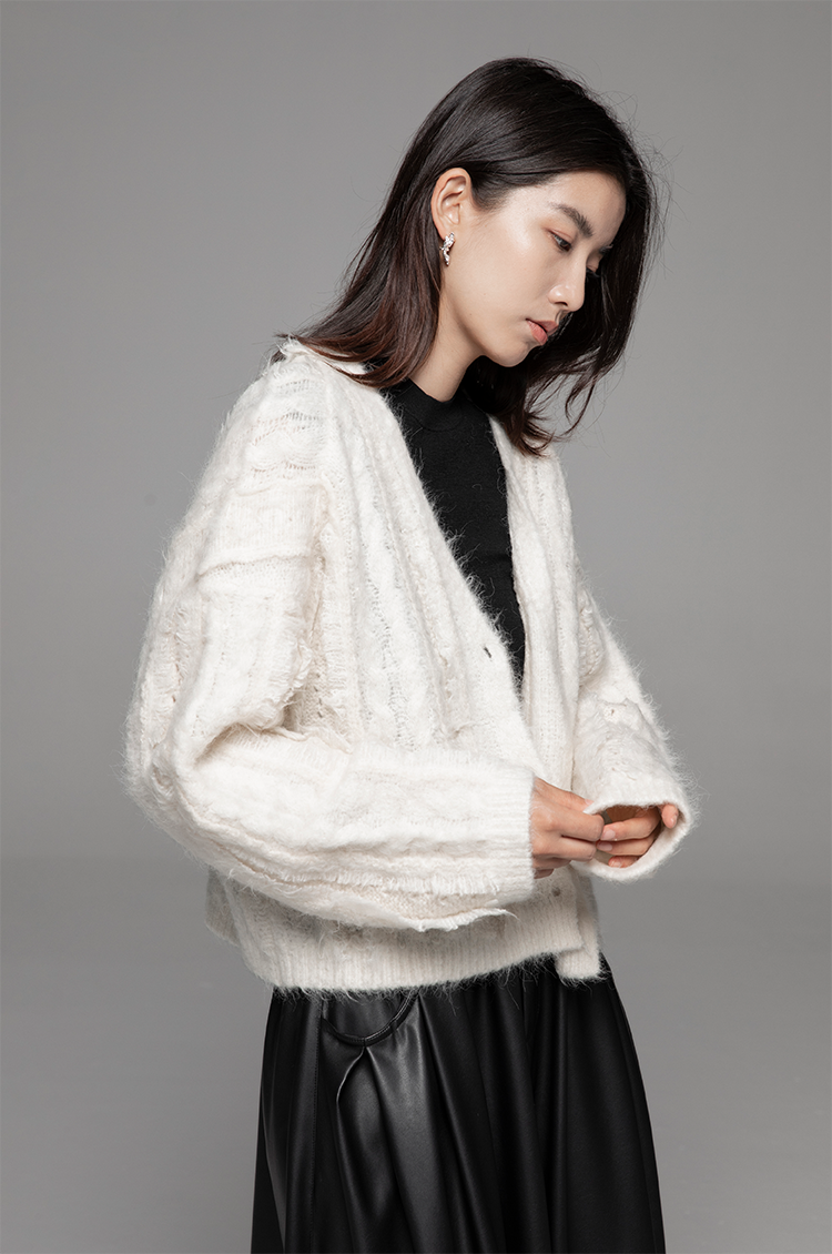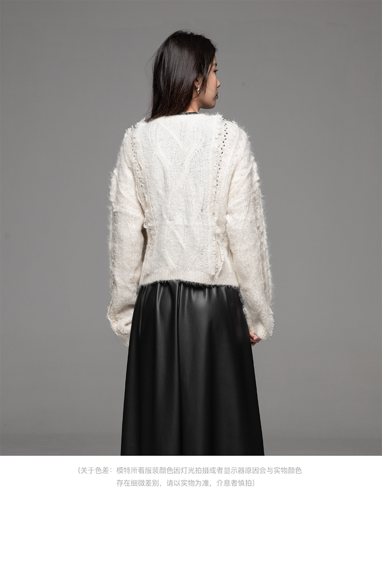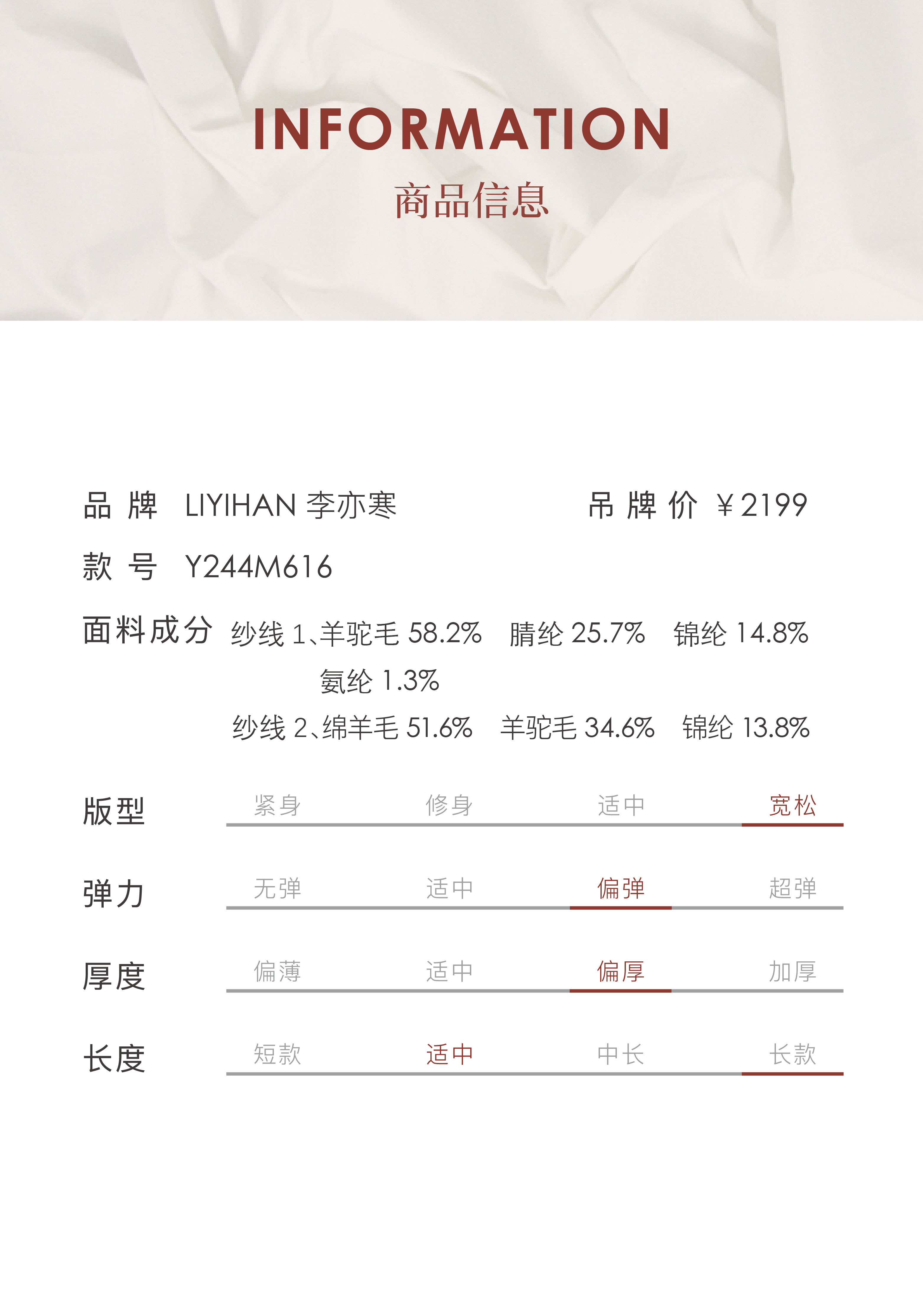 LIYIHAN 24秋季驼绒绵羊毛短款毛针织衫V领落肩开衫单排扣慵懒风