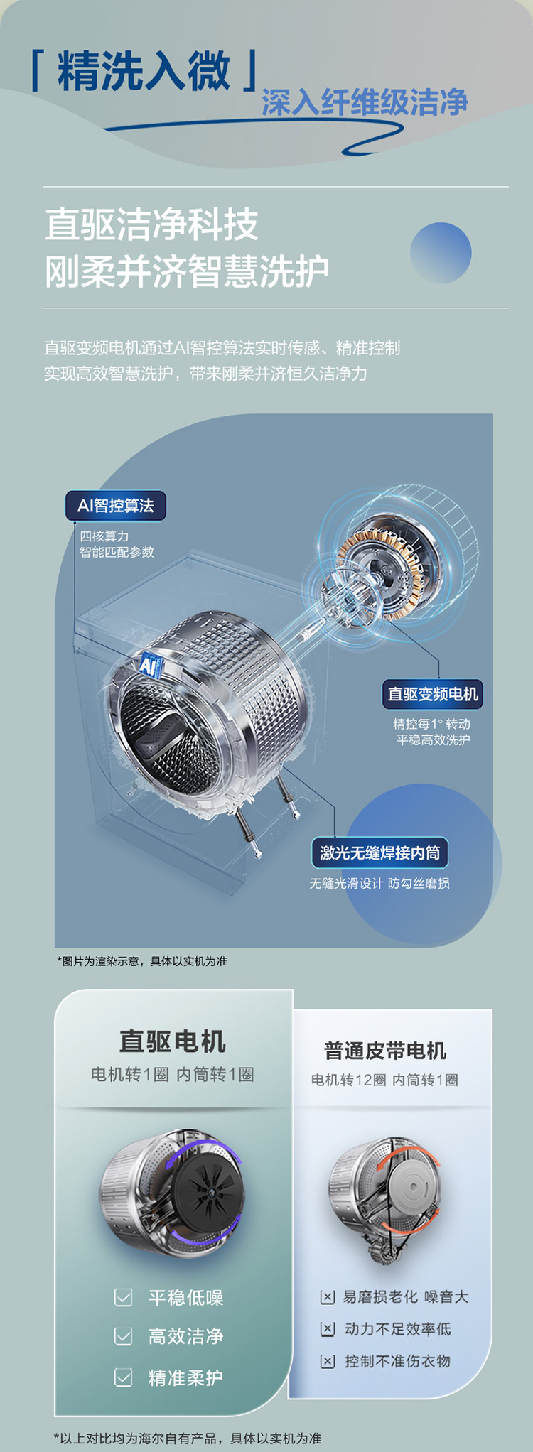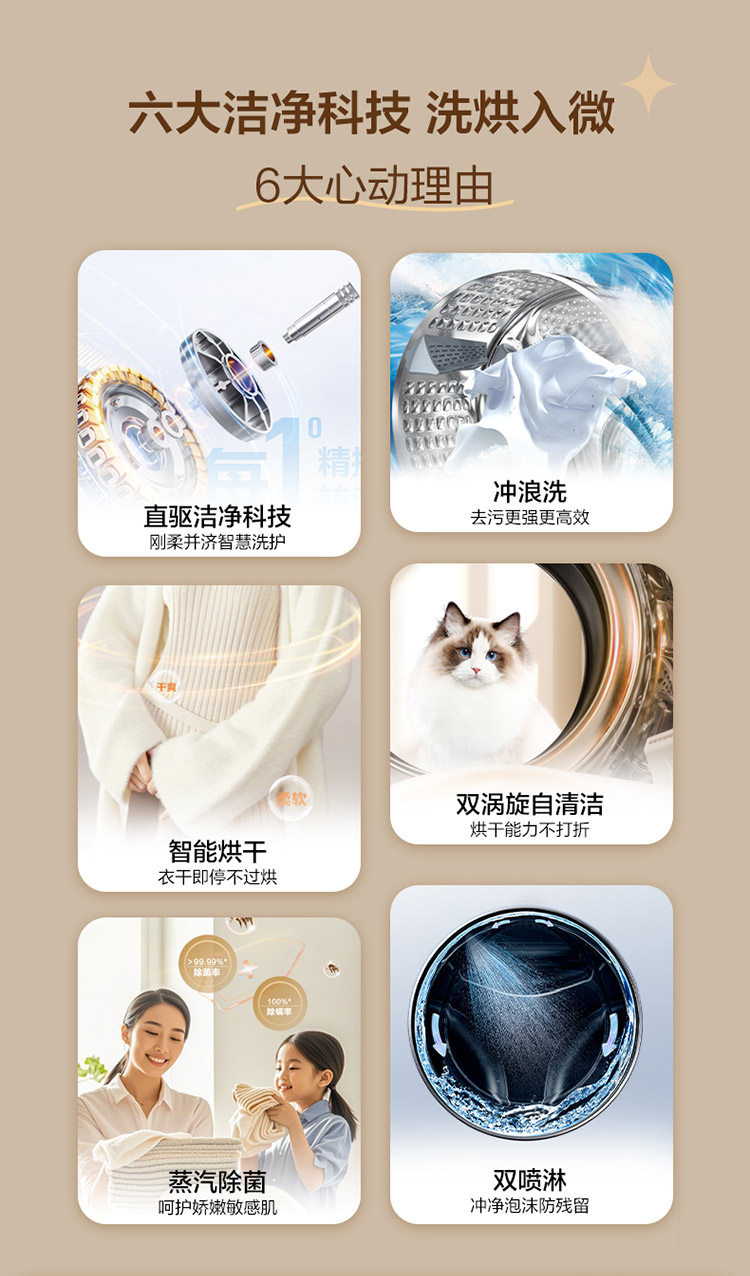 海尔(252211)滚筒洗衣机G10090HBD12S直驱 智能投放 蒸汽除菌