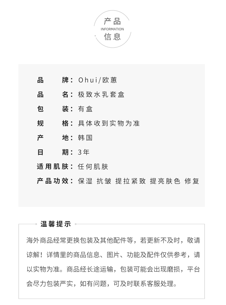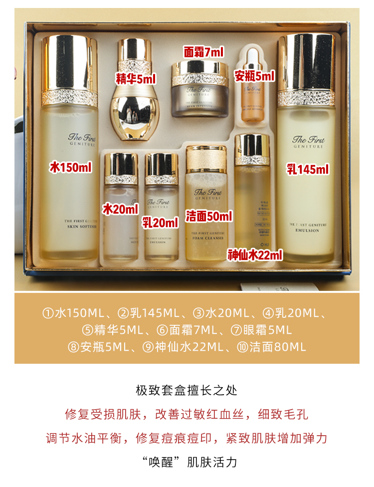 OHUI欧惠极致套盒安瓶水乳霜精华奇迹补水保湿 修复 舒缓保湿【CDF】
