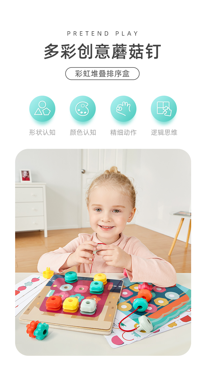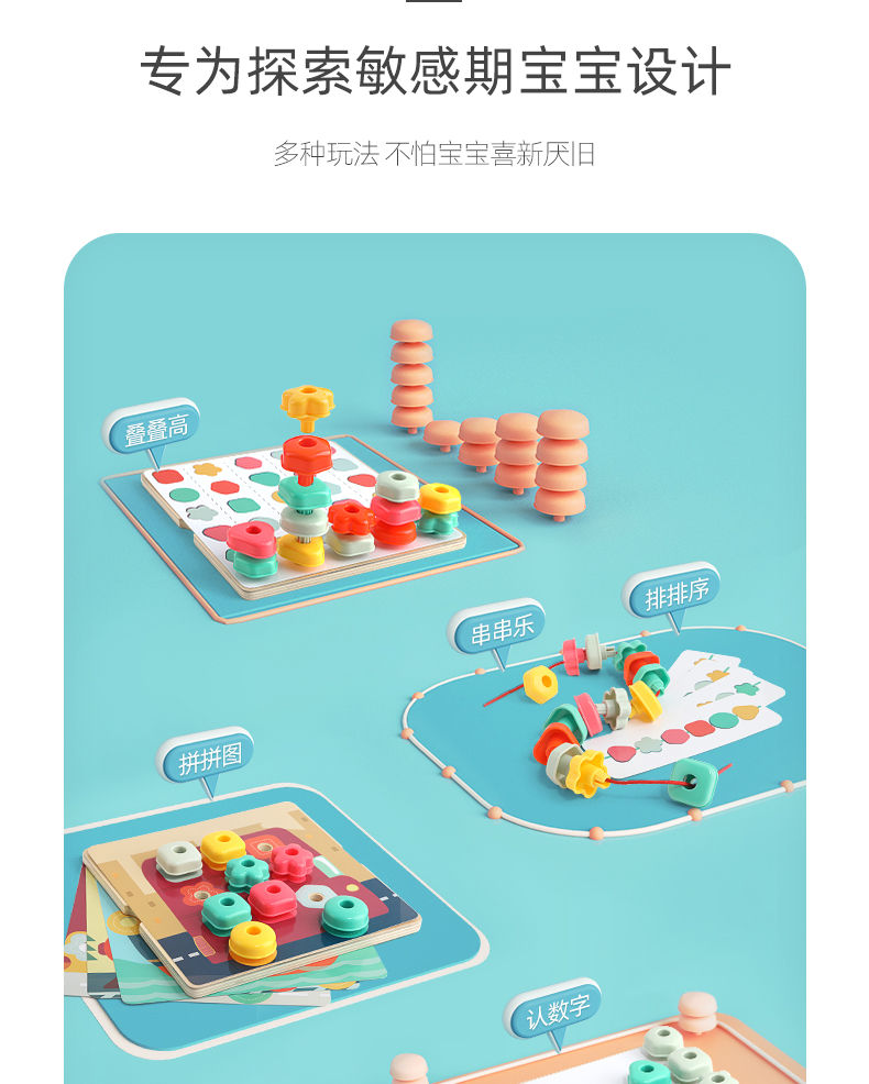 特宝儿蘑菇钉串珠儿童玩具益智宝宝早教训练专注力1岁2岁3岁6个月