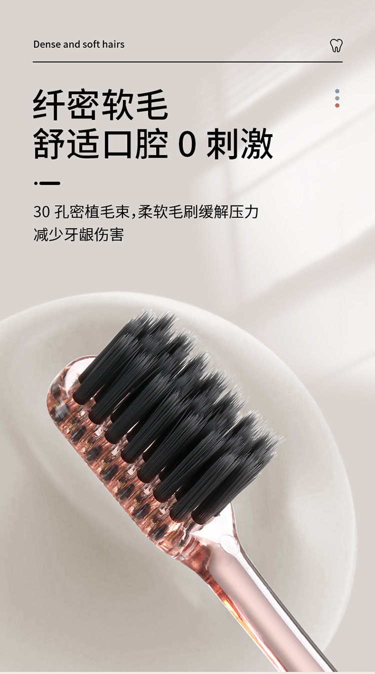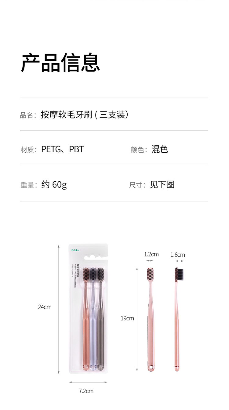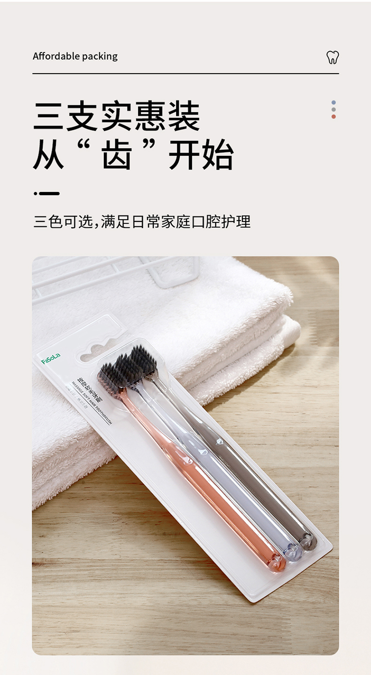 FaSoLa 软毛牙刷3支装家用成人男女情侣备长炭清洁美白细毛家庭装