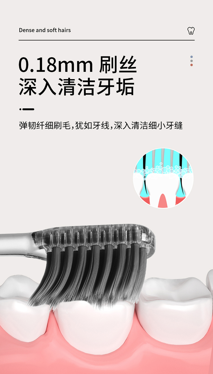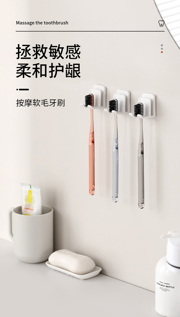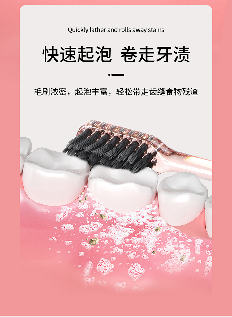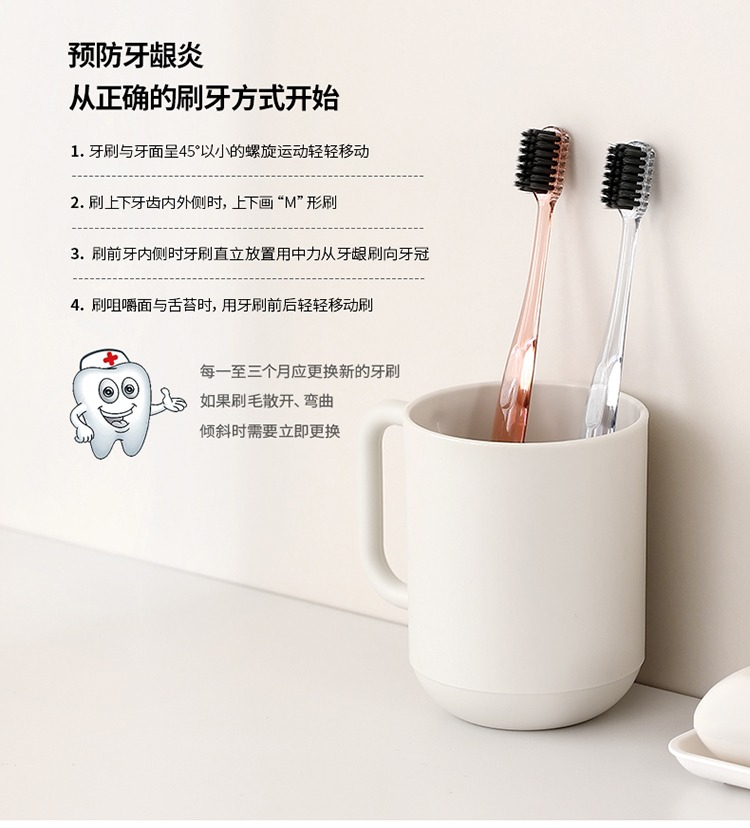 FaSoLa 软毛牙刷3支装家用成人男女情侣备长炭清洁美白细毛家庭装