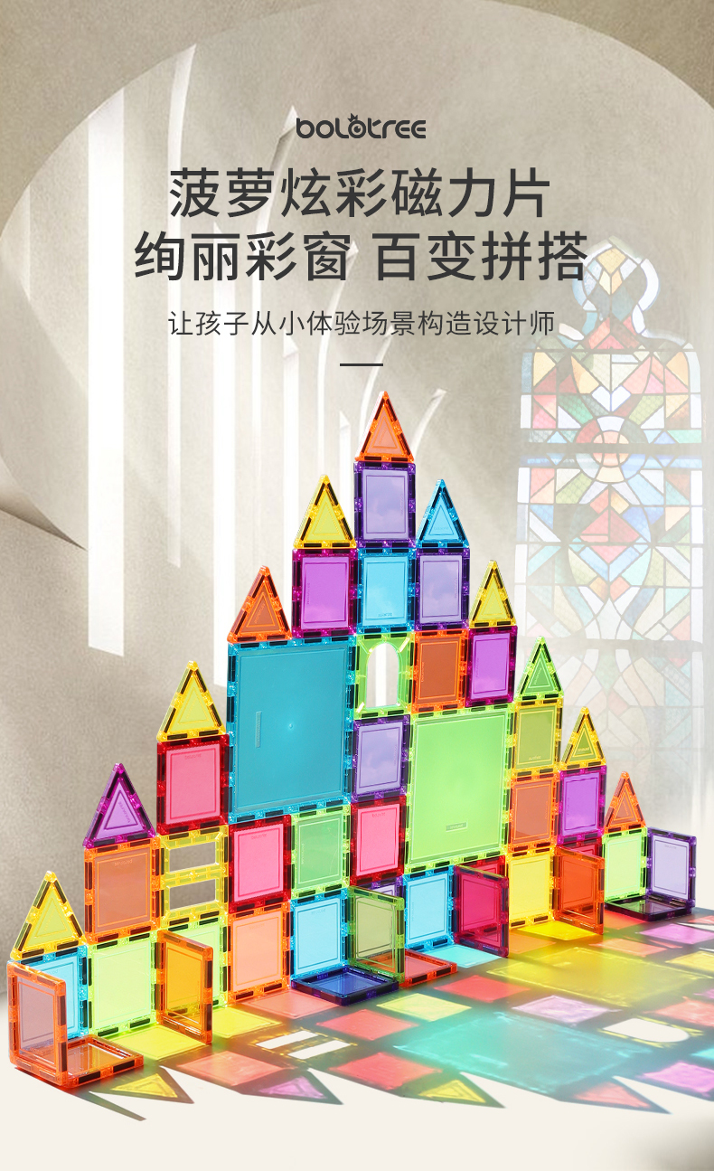 菠萝树彩窗磁力片儿童益智积木磁性磁铁玩具礼物
