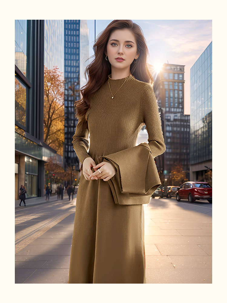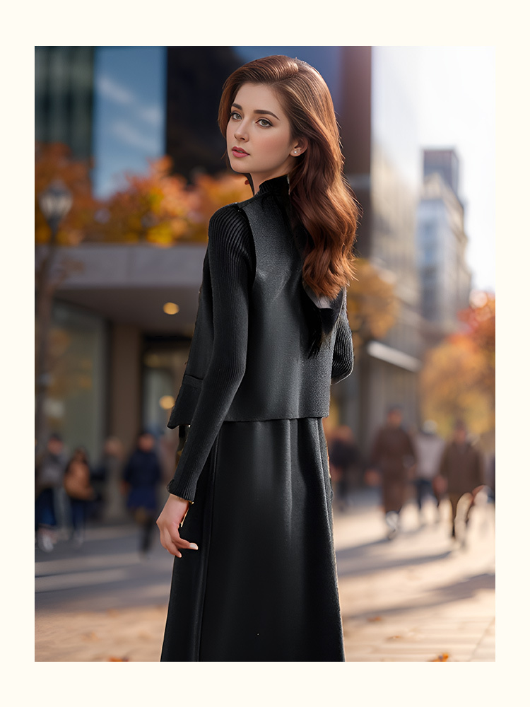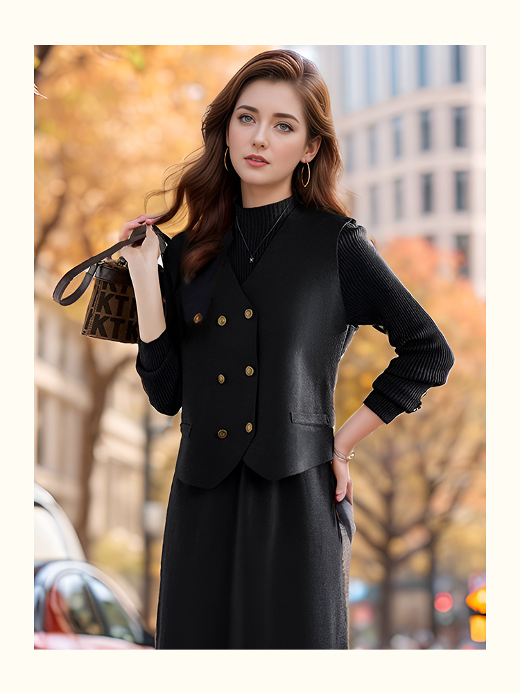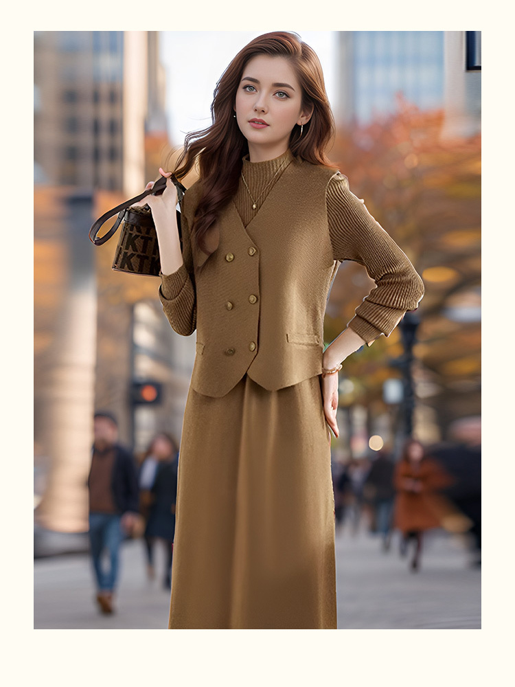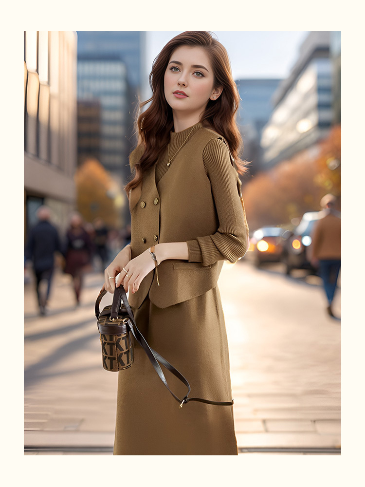 奢姿2024年冬季新款大码女装马甲针织裙两件套胖妹妹气质名媛套装9844926855