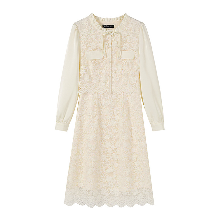 奢姿大码女装2024秋季气质蕾丝拼接裙子胖妹妹盘扣设计时尚连衣裙9943860347