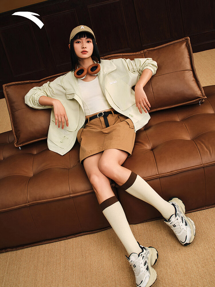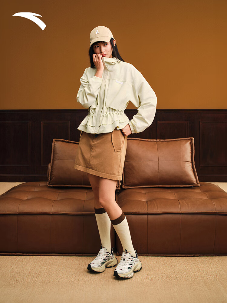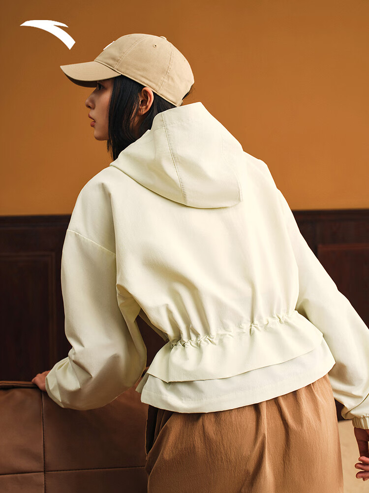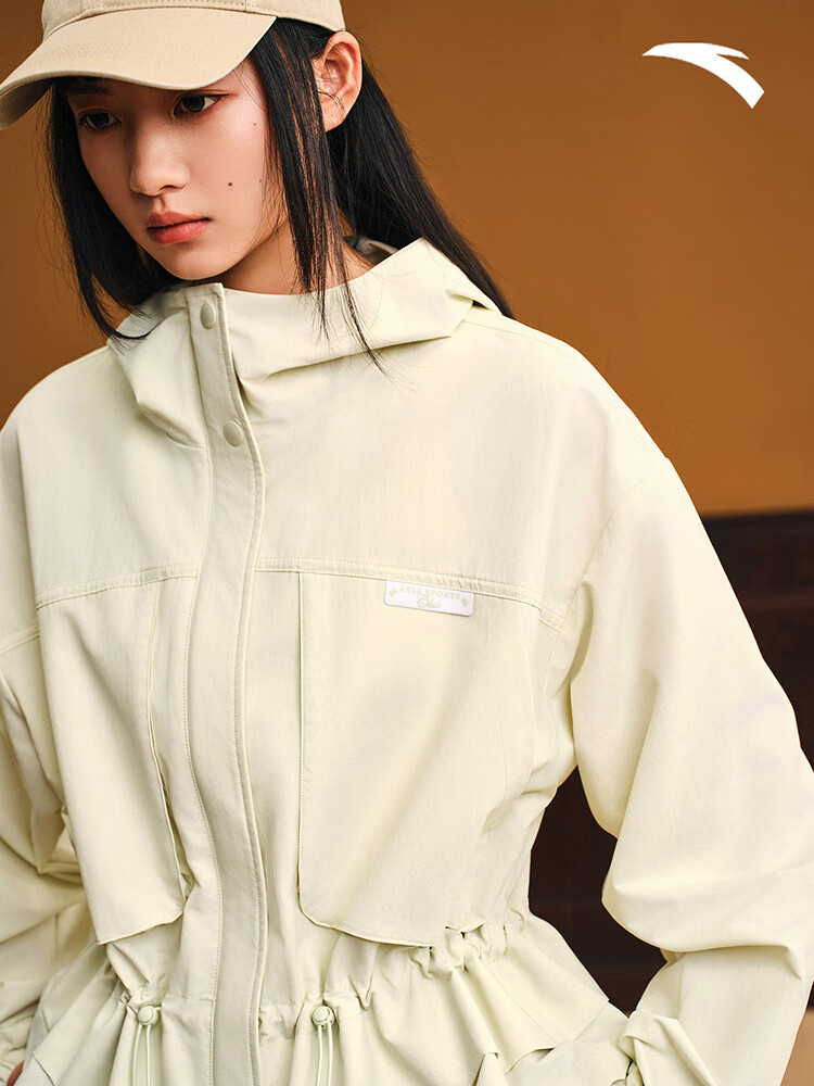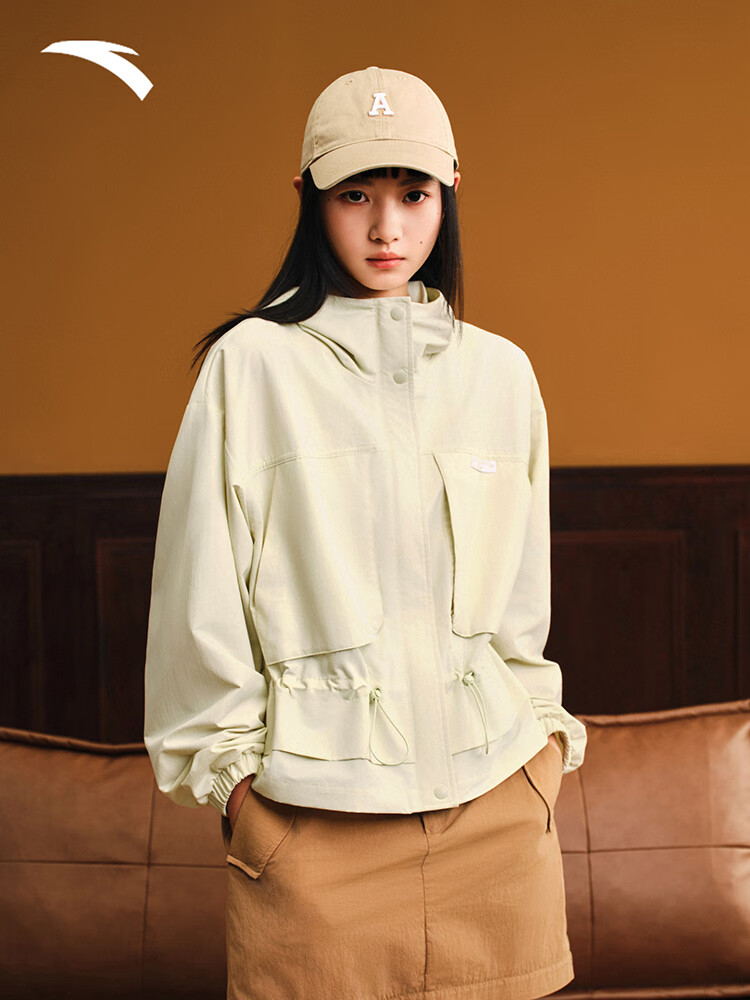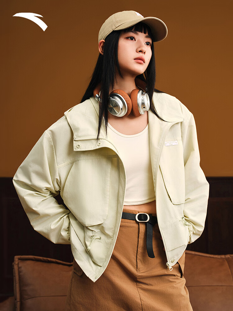 安踏【关晓彤同款】工装风休闲外套 女新款宽松梭织运动上衣162538603 浅柠黄-2