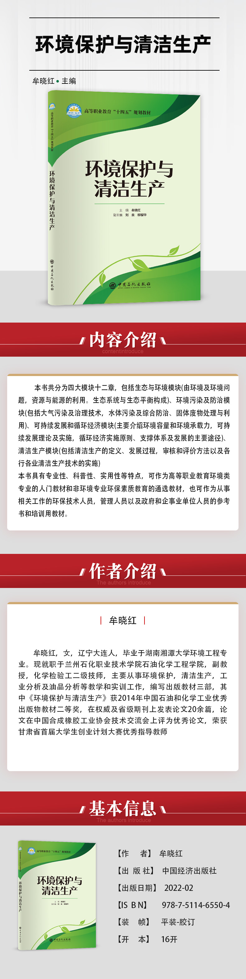【旗舰店】环境保护与清洁生产 (高等职业教育“十四五”规划教材) 环境保护、清洁生产、污染防治、石油化工中国石化出版社