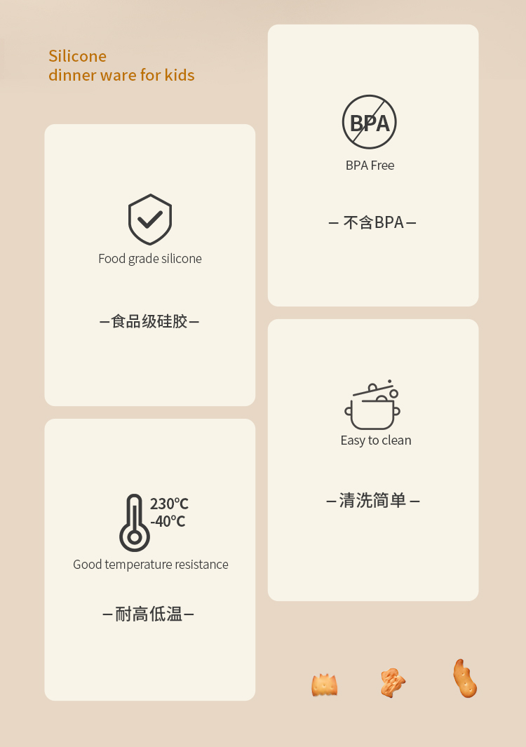 *Partita硅胶餐具餐盘餐碗双耳杯三件套