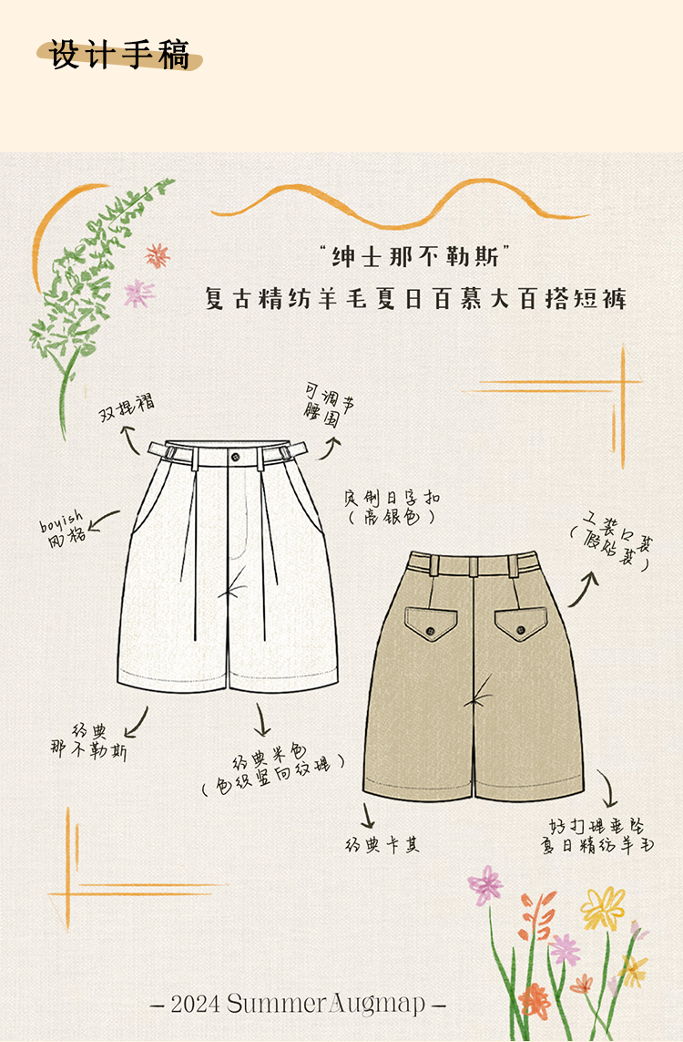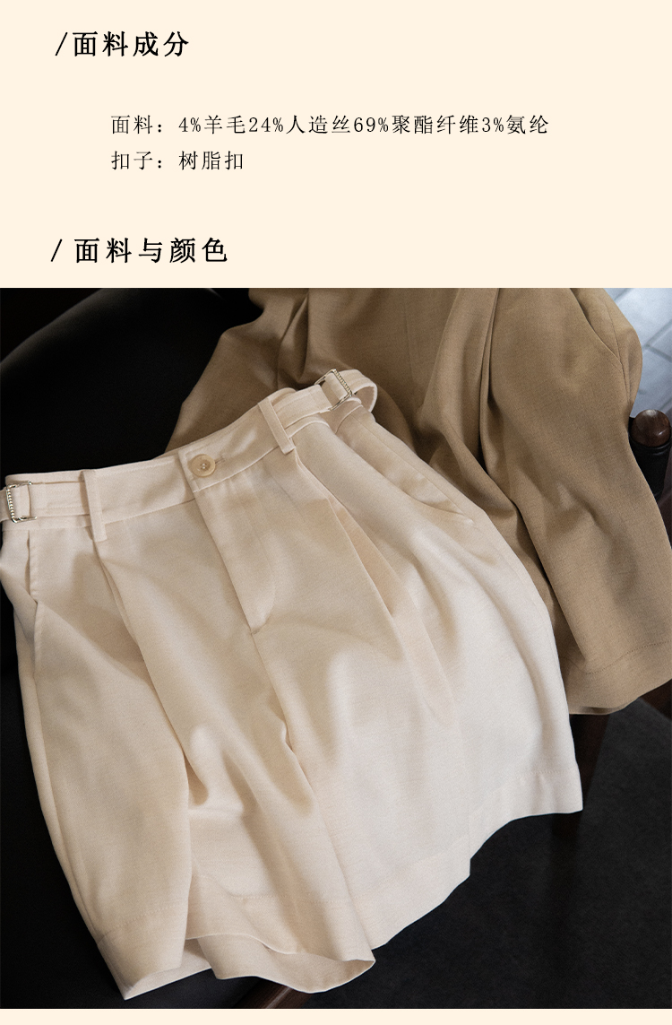 浮生八记/24A055/复古精纺羊毛夏日百搭百慕大短裤