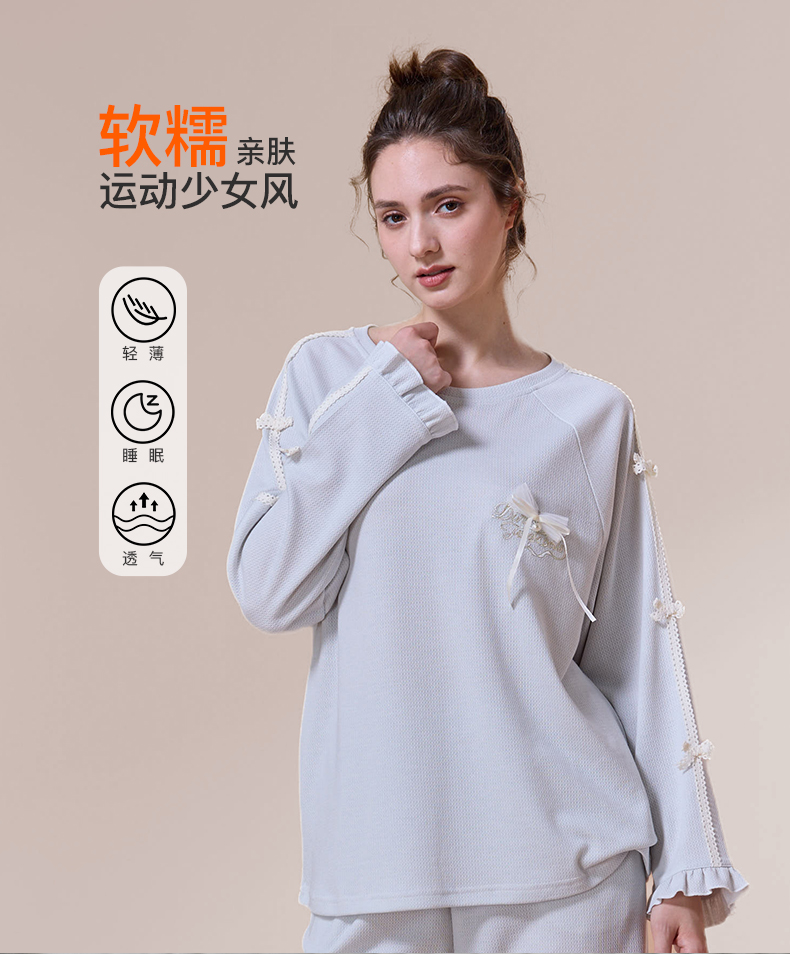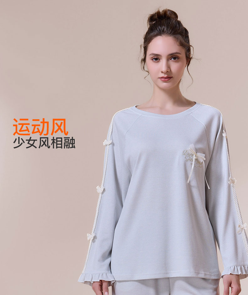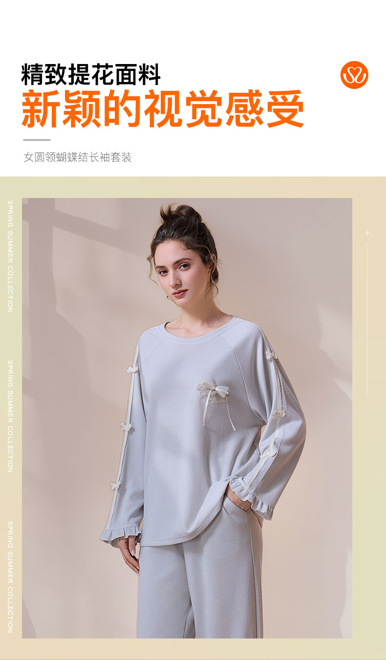 【第二件 0 元| 满2件 5 折】【秀黛】女圆领蝴蝶结长袖套装女士春秋睡衣家居服S3551002T【门店同款】