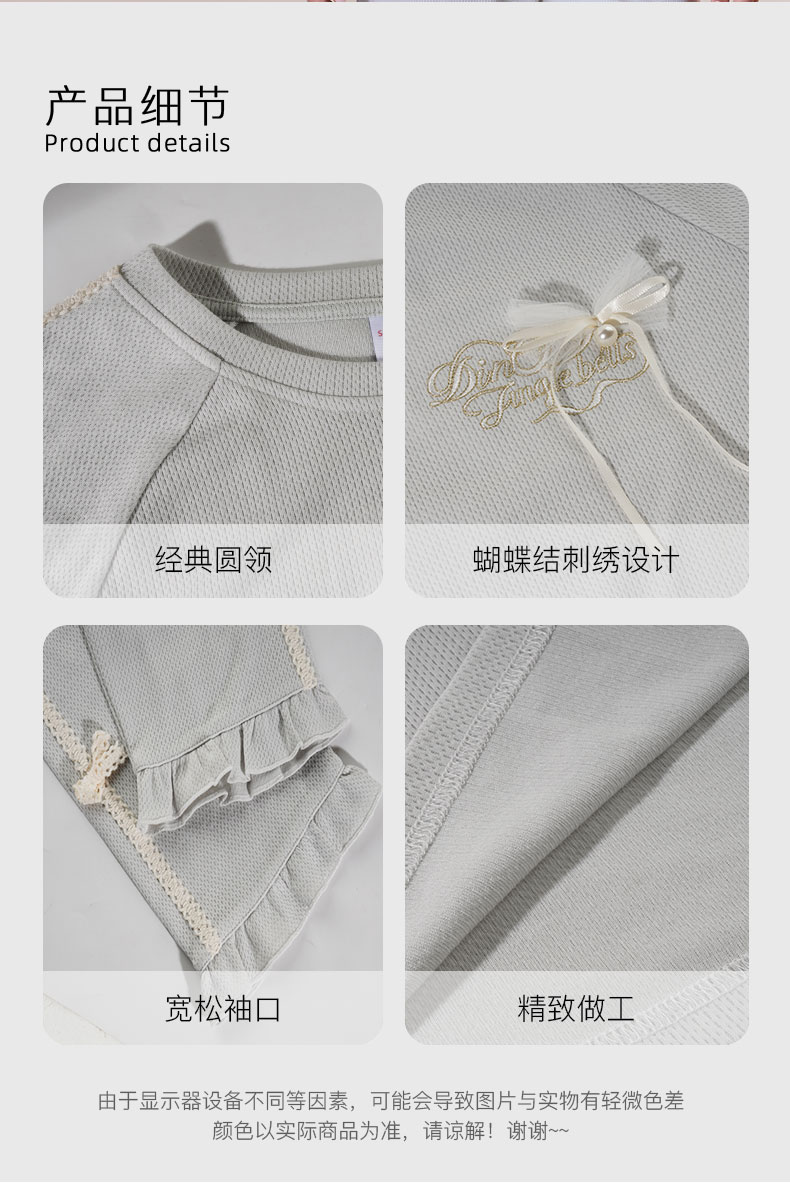 女圆领蝴蝶结长袖套装
