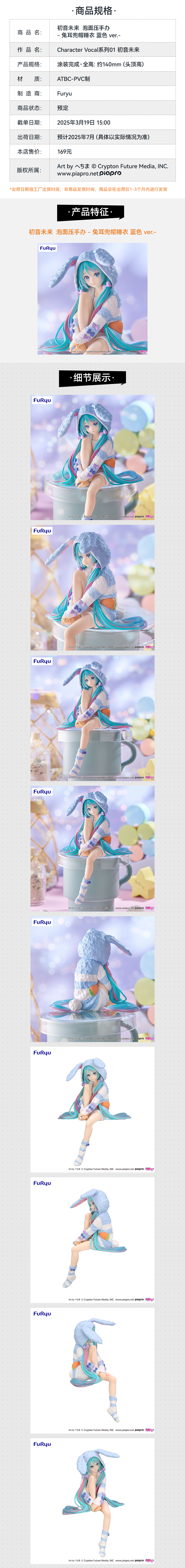 【GSC补款】初音未来 泡面压手办 - 兔耳兜帽睡衣 蓝色 ver.-