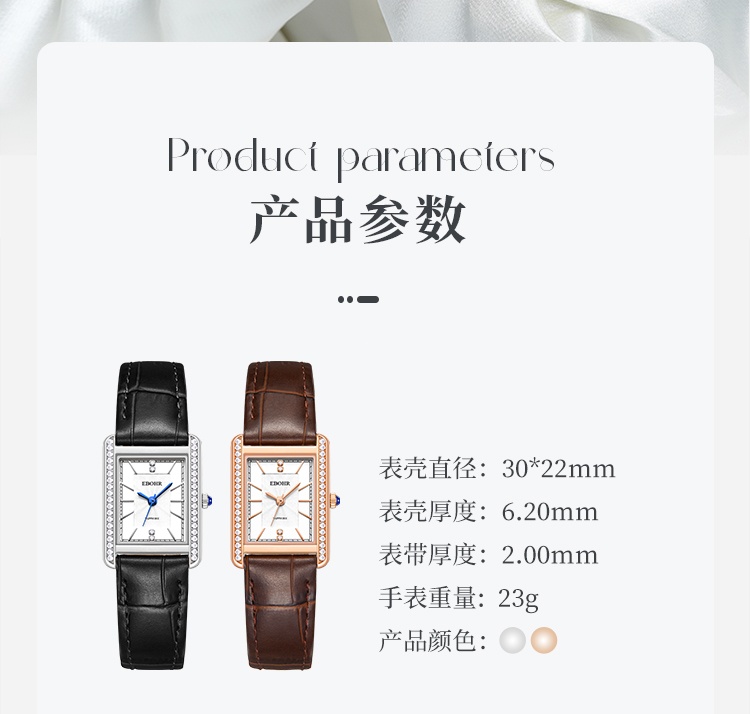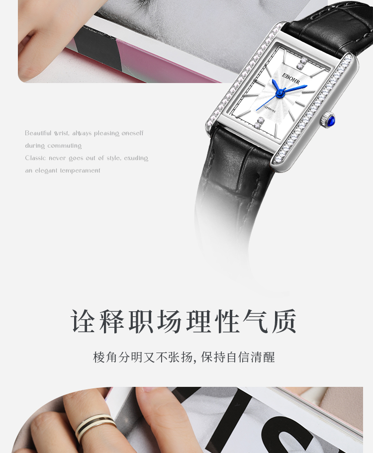 依波表EBOHR 大师系列经典优雅气质方表石英表女士腕表5171