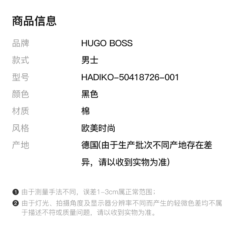 HUGO BOSS 男黑色男士运动裤 HADIKO-50418726-001