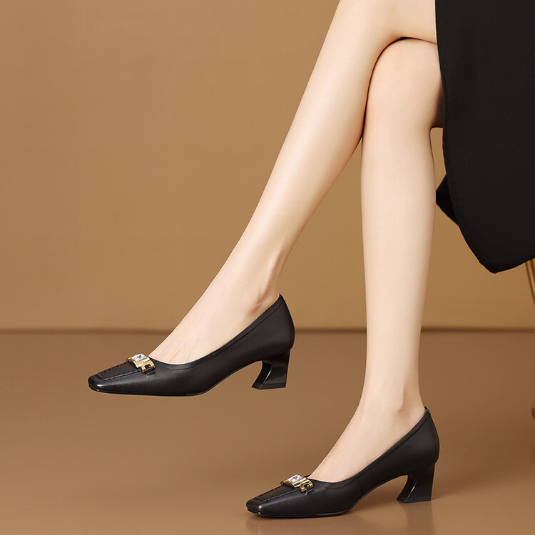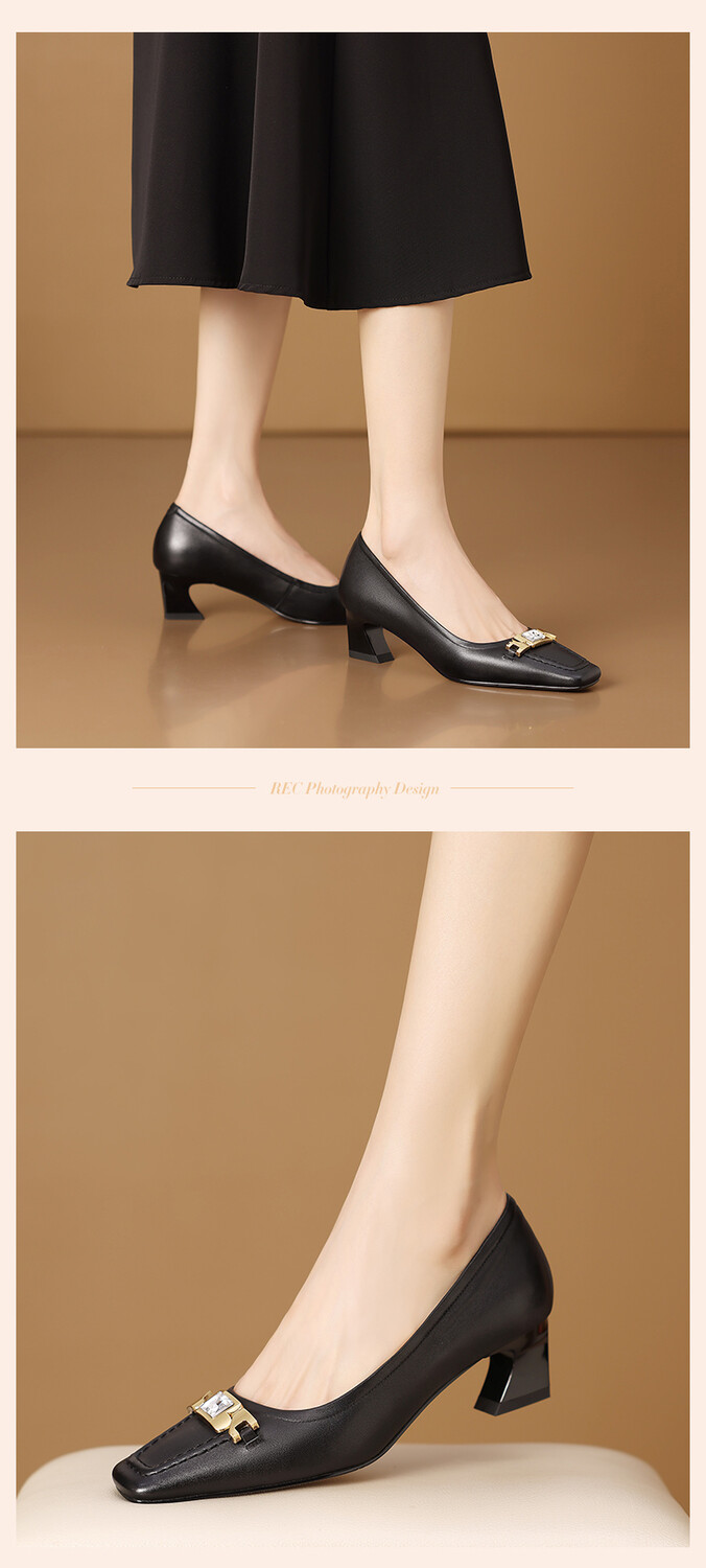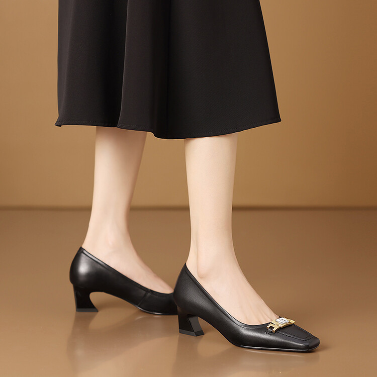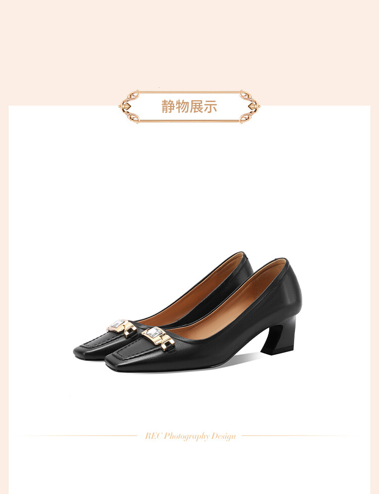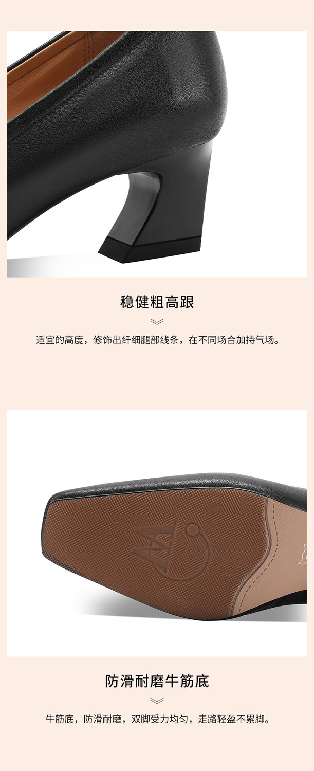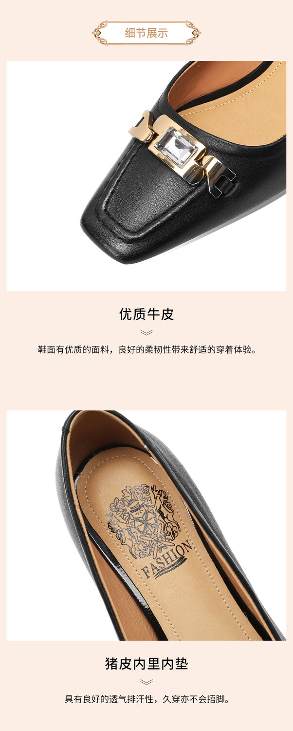 【预售5天】春秋新款方头单鞋,女法式复古一脚蹬小皮鞋粗跟高跟鞋黑色女鞋HY&H3340
