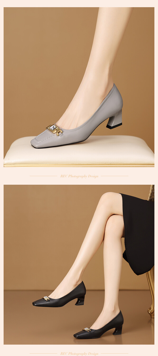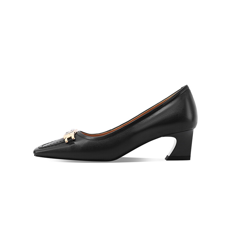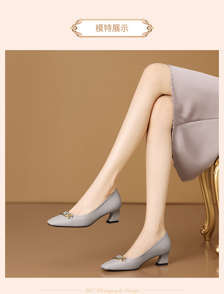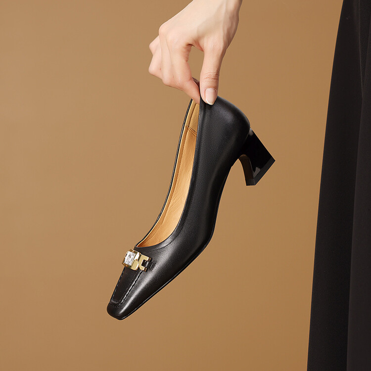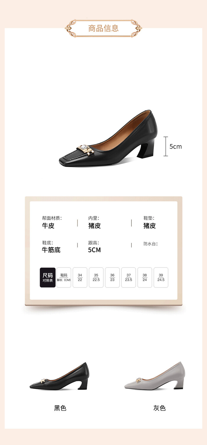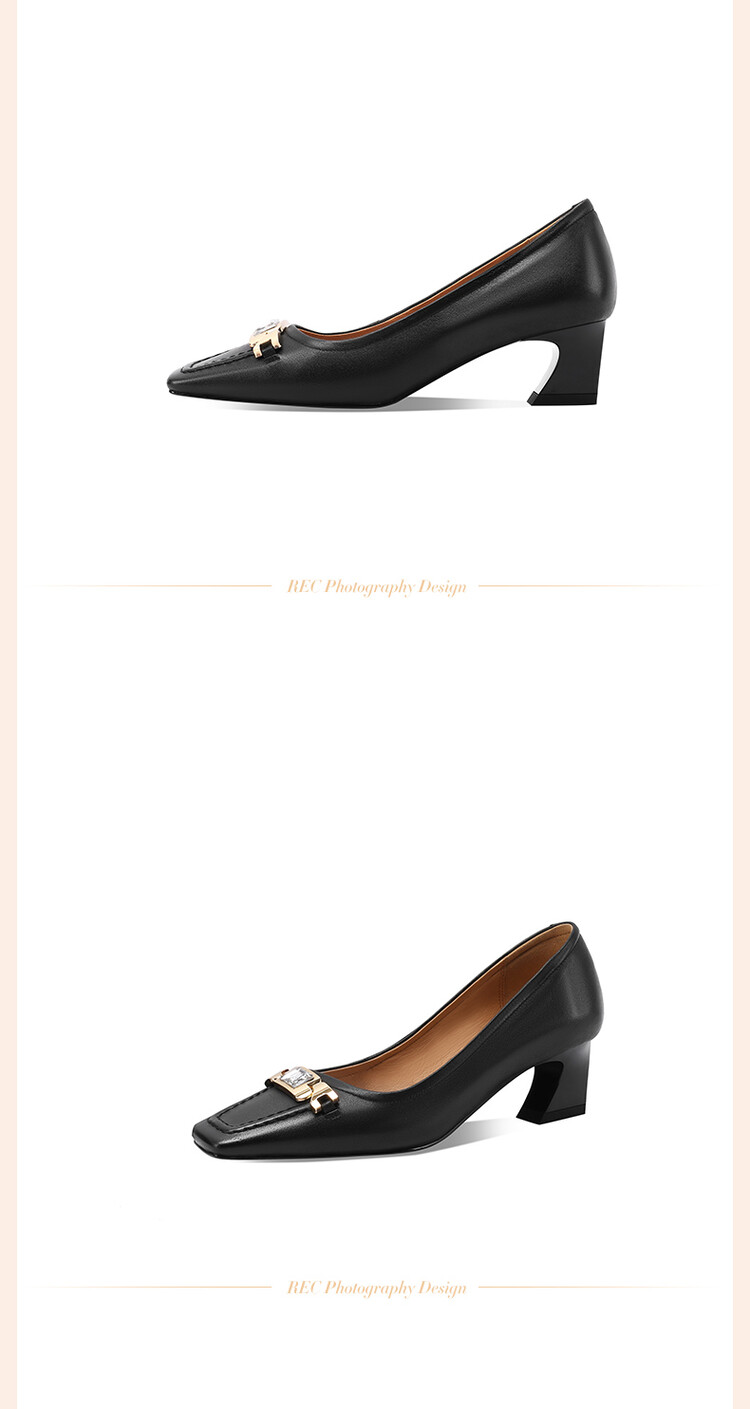 【预售5天】春秋新款方头单鞋,女法式复古一脚蹬小皮鞋粗跟高跟鞋黑色女鞋HY&H3340