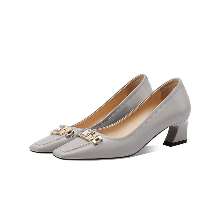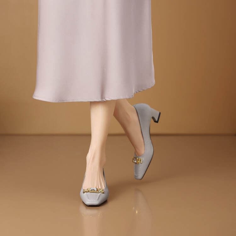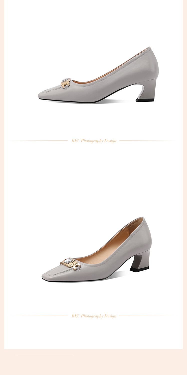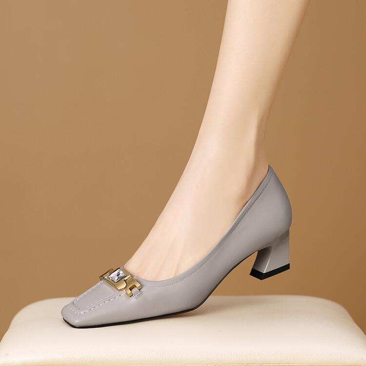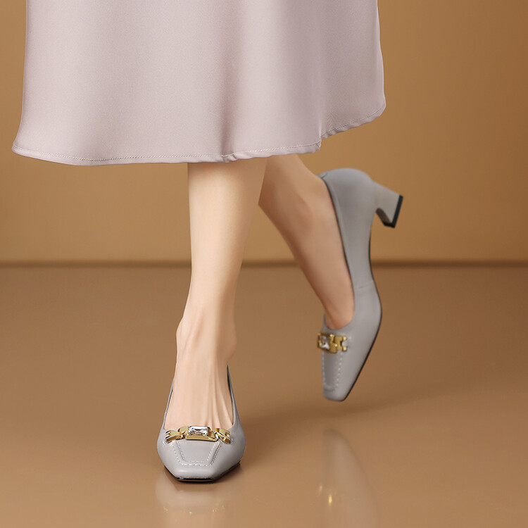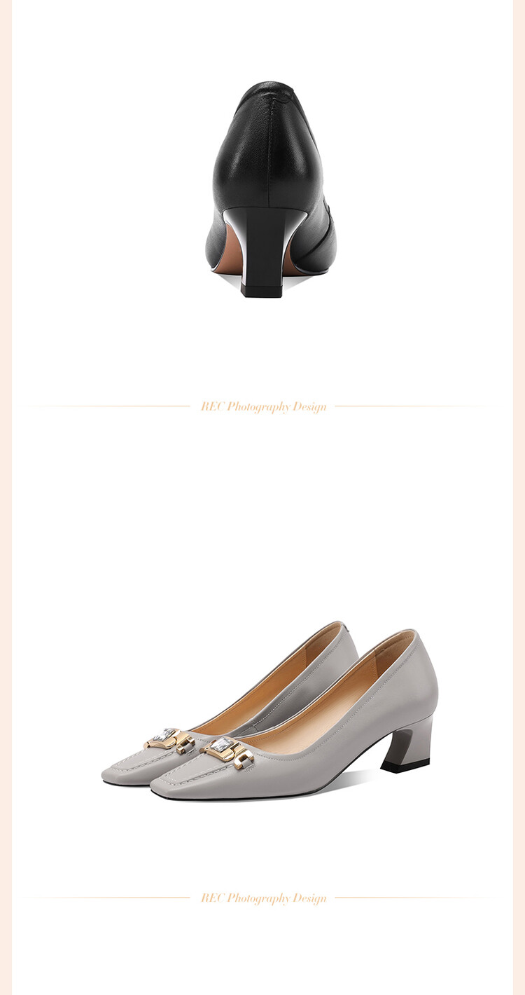 【预售5天】春秋新款方头单鞋,女法式复古一脚蹬小皮鞋粗跟高跟鞋黑色女鞋HY&H3340