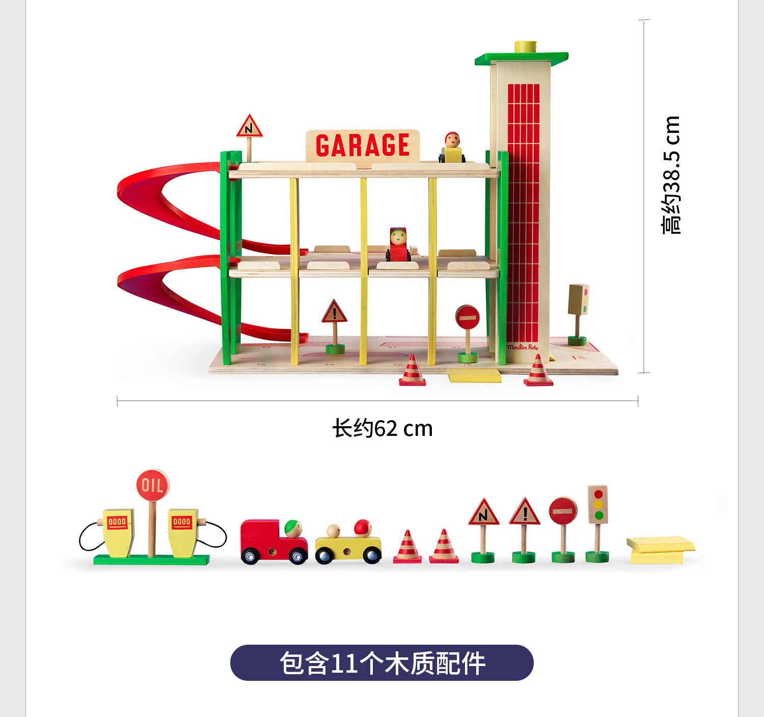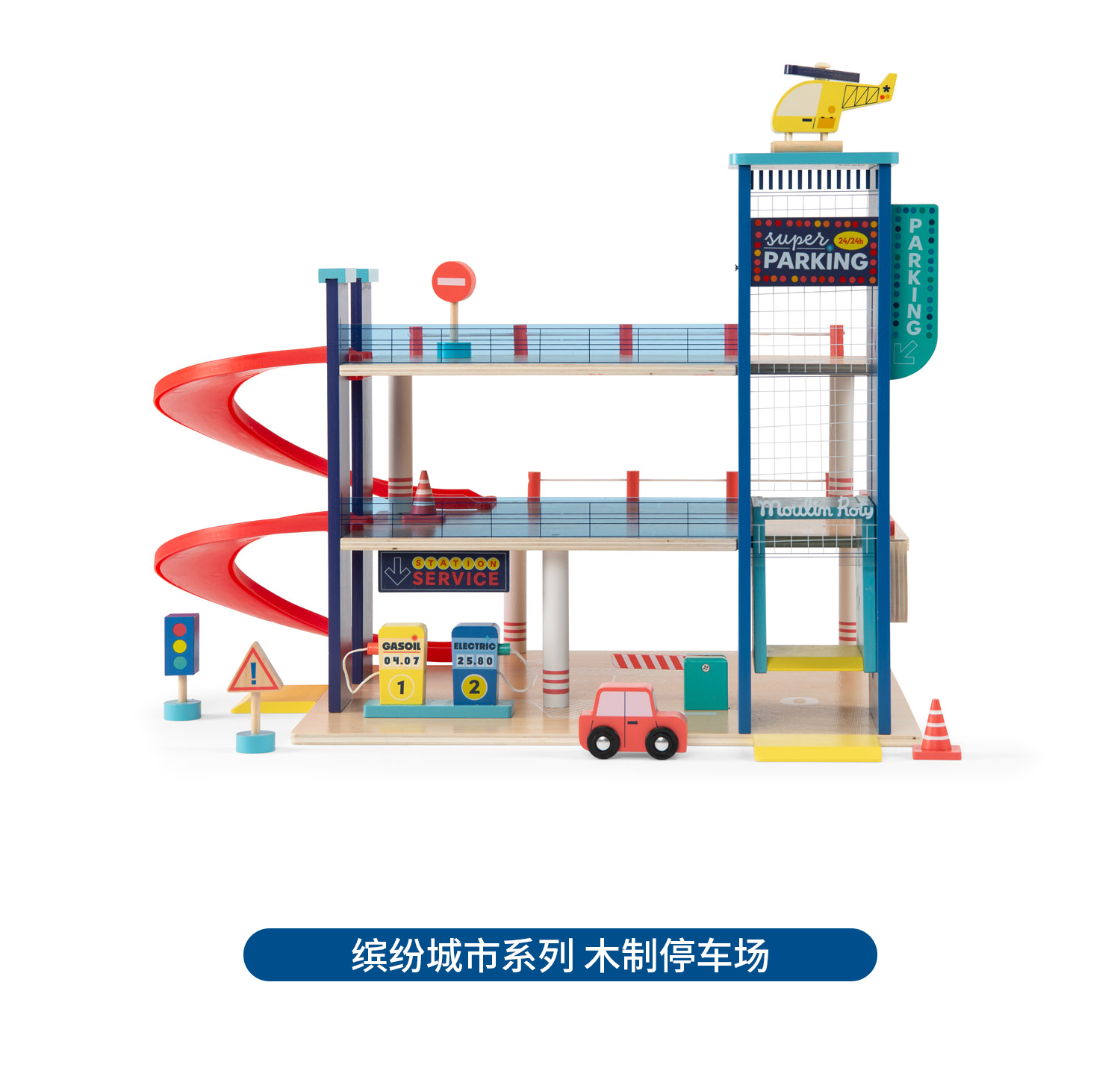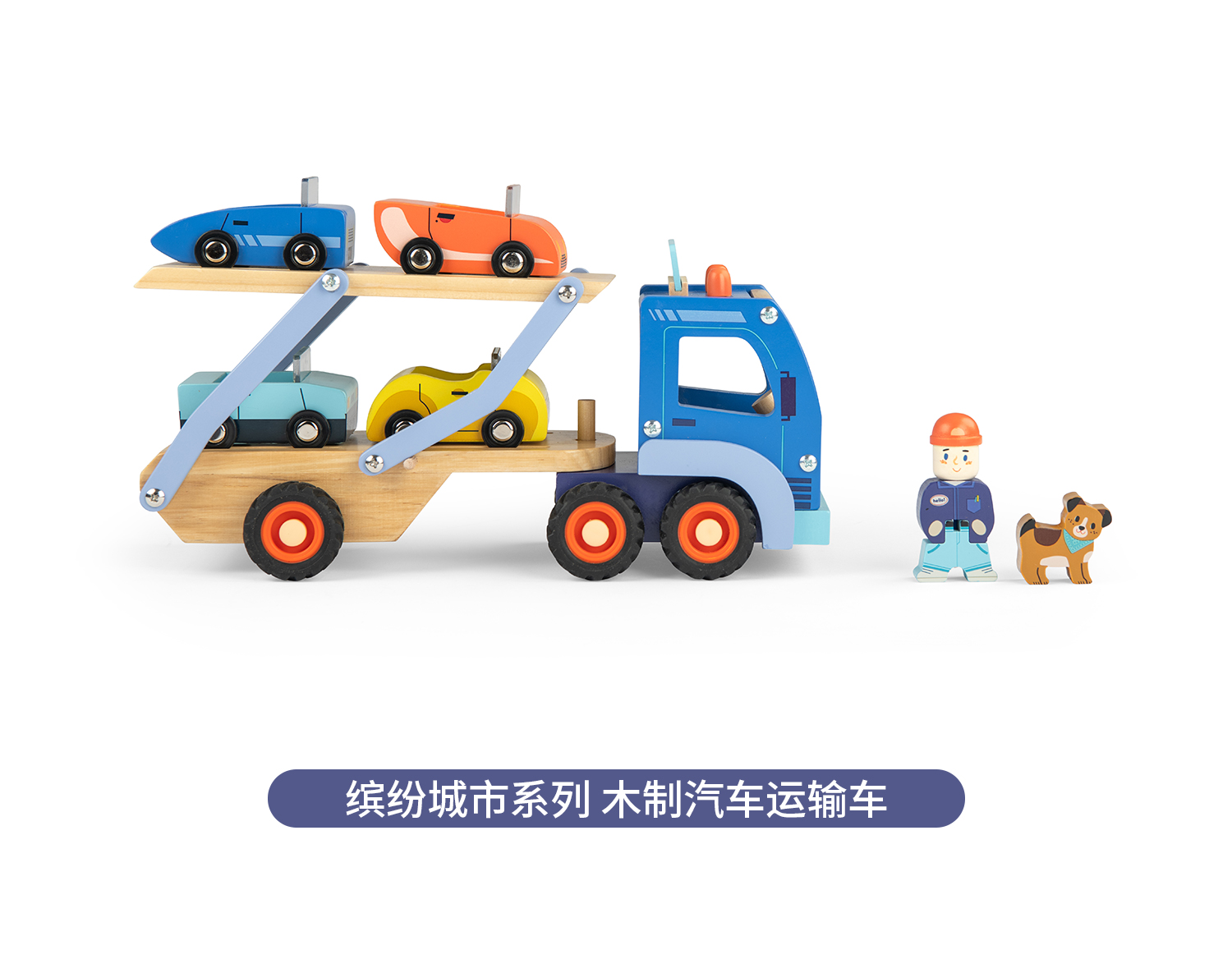 Moulin Roty 缤纷城市 汽车运输车 益智木玩 适合3岁+ 木质益智 缤纷城市系列 法国品牌-725736