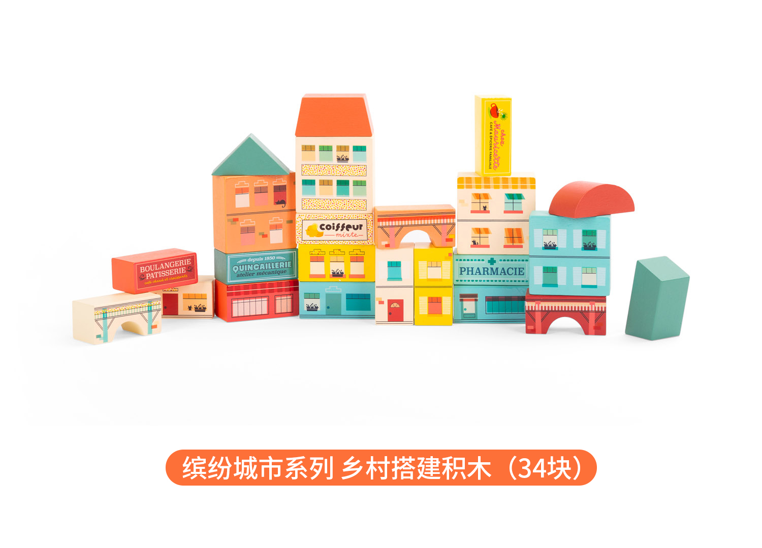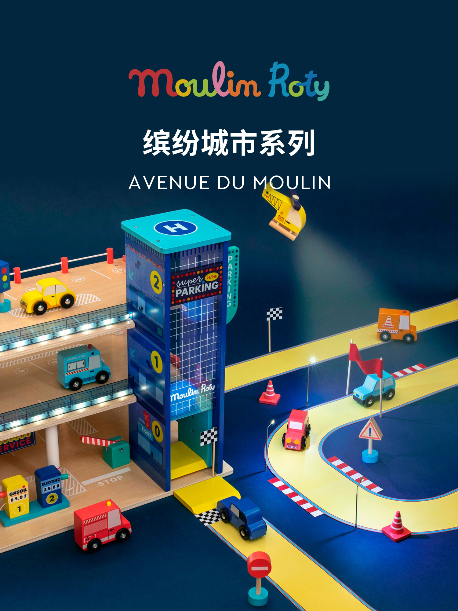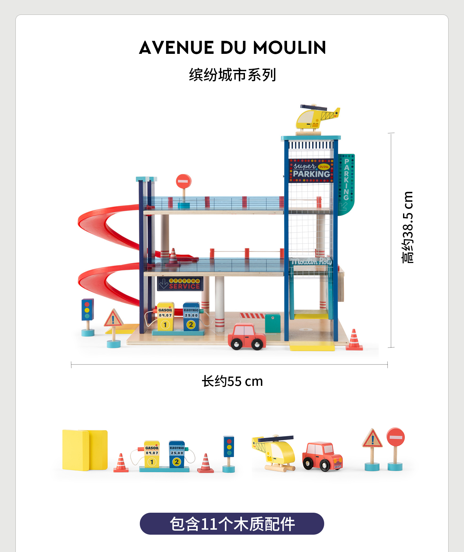 Moulin Roty 缤纷城市 汽车运输车 益智木玩 适合3岁+ 木质益智 缤纷城市系列 法国品牌-725736