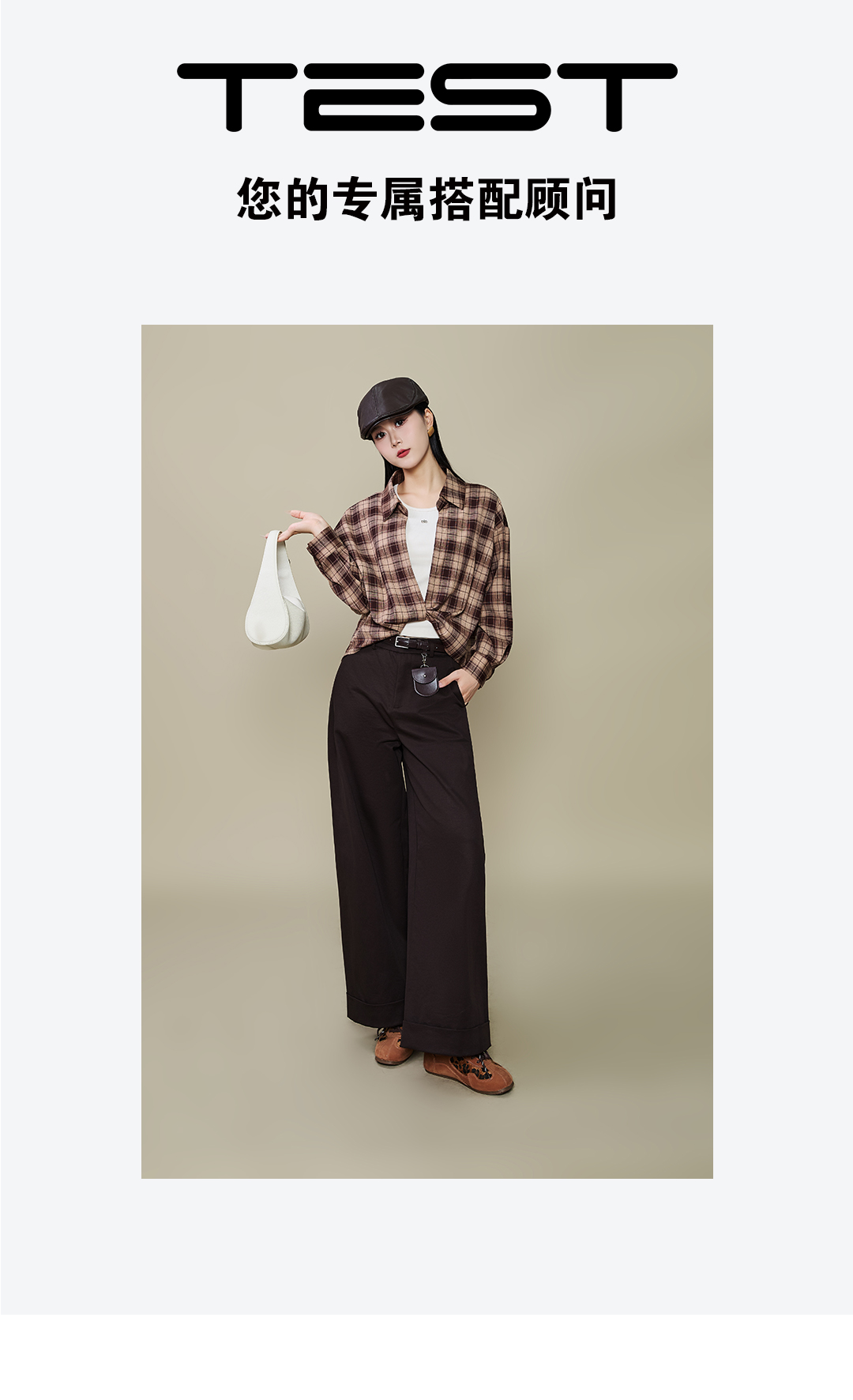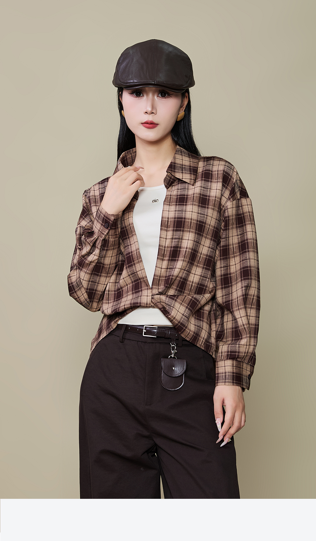 秋上新复古格纹衬衫内搭白色T恤两件套1253089