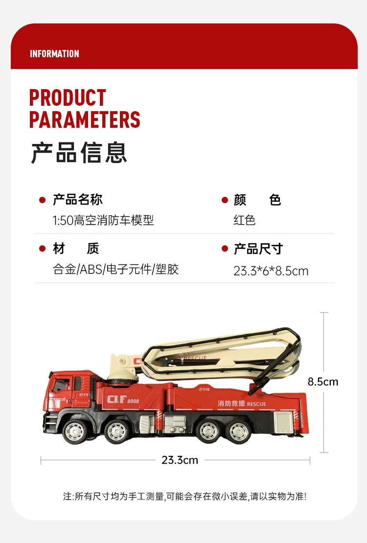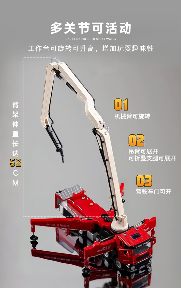 【实付满199送钥匙扣】【1:50高空消防车模型】合金模型摆件儿童玩具车送礼仿真车模