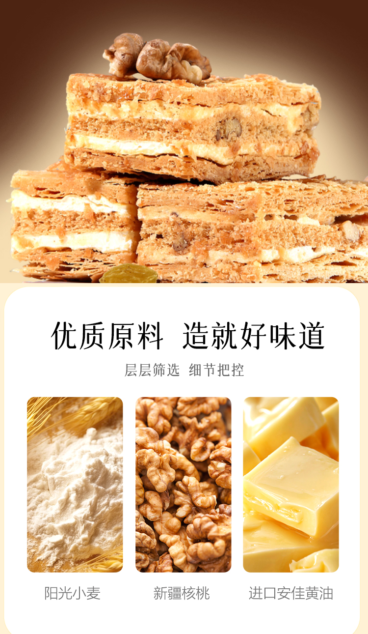 1、108层纯手工酥皮,精选进口新西兰黄油