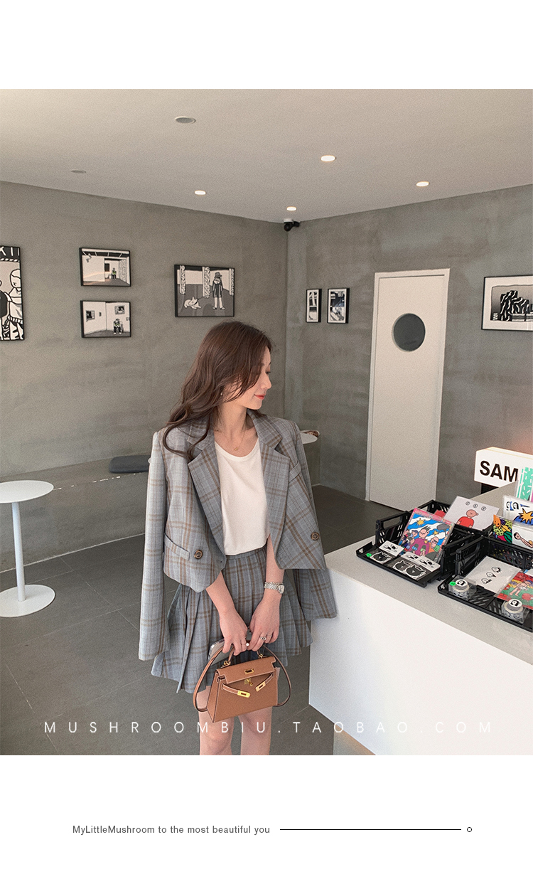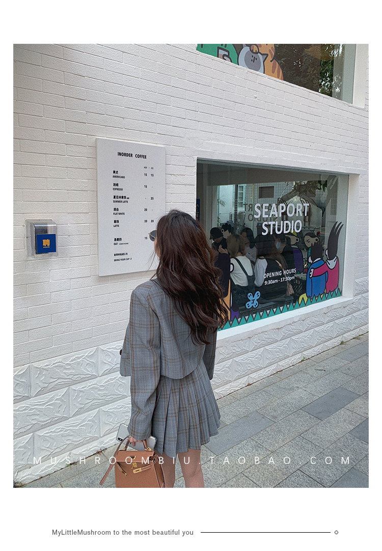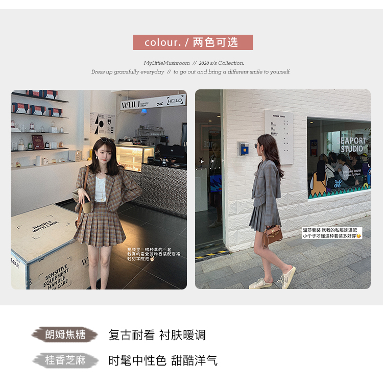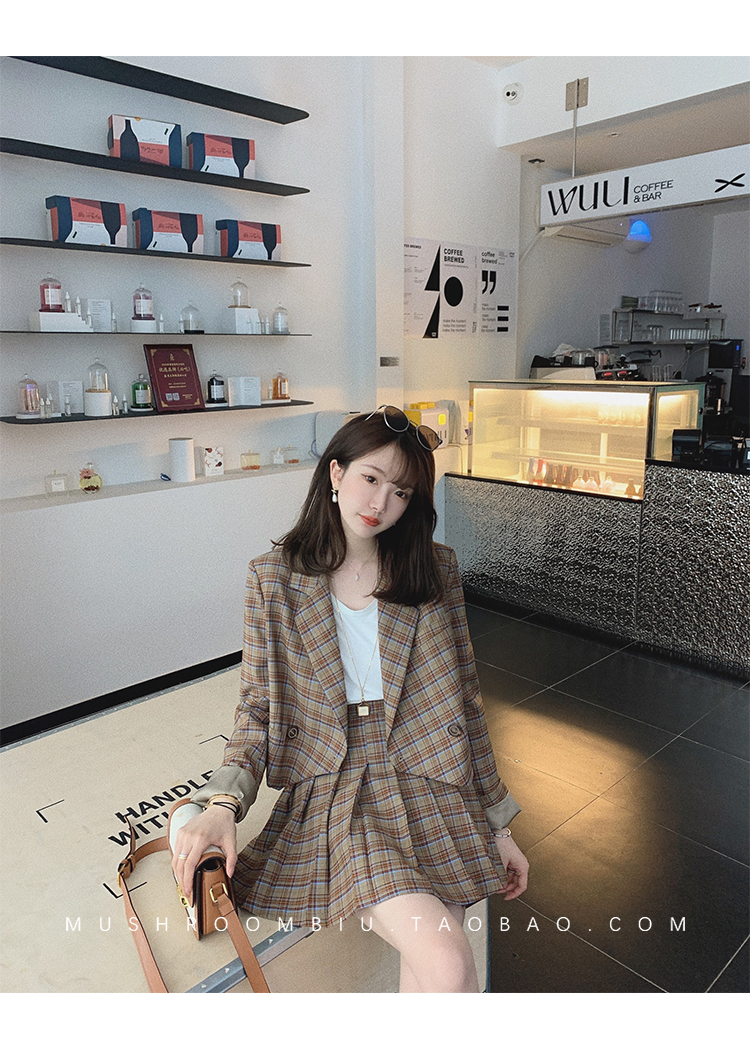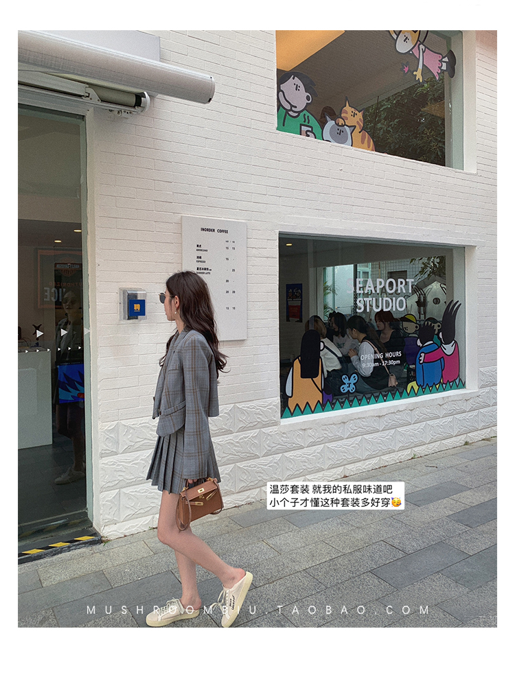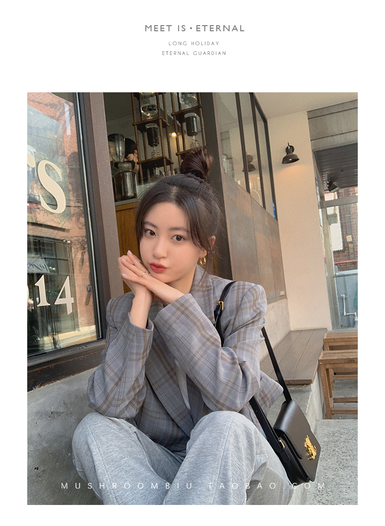 【金蘑菇菇 温莎日记~】春日少女感,学院风格子西装 搭配牛仔 或者半裙都很美~