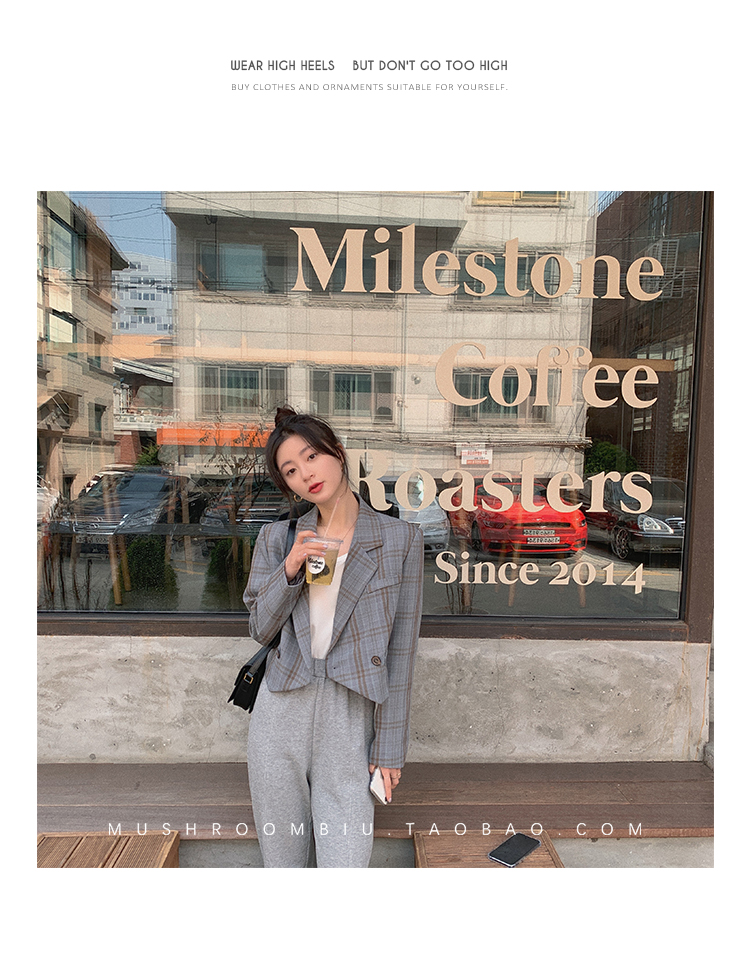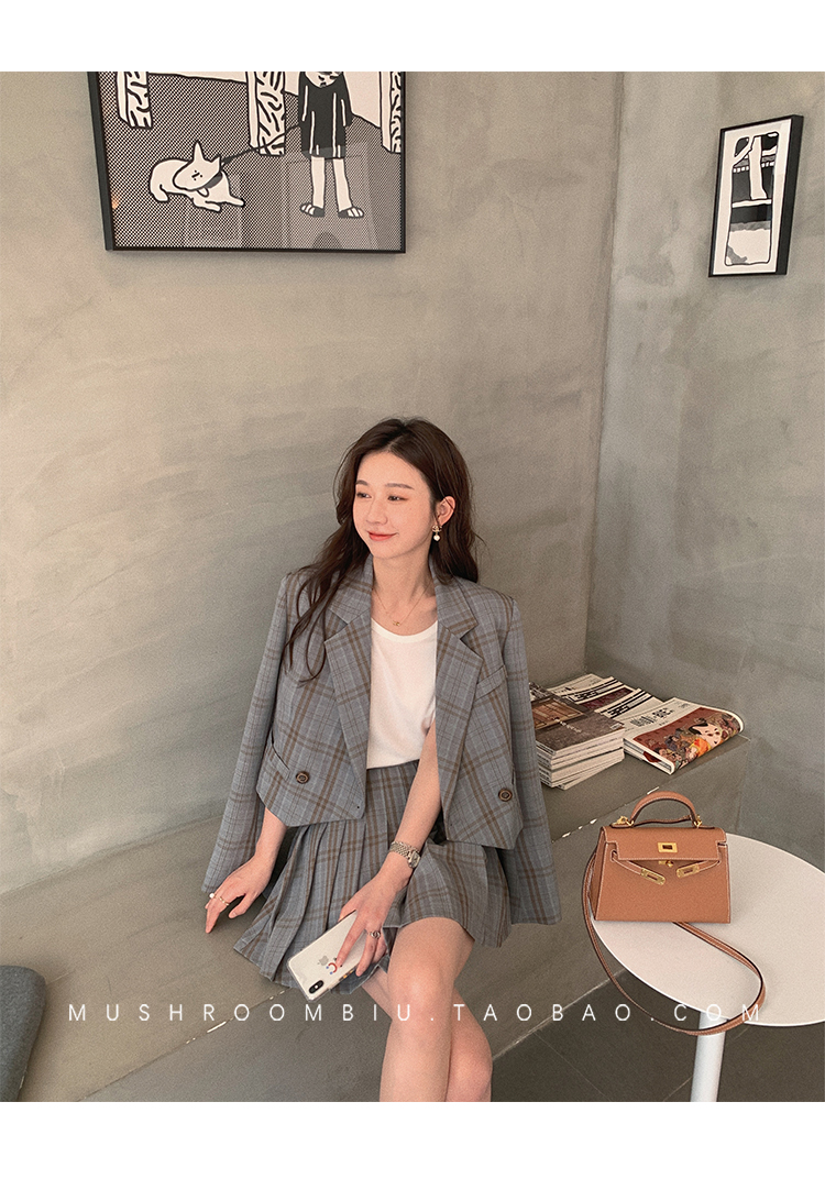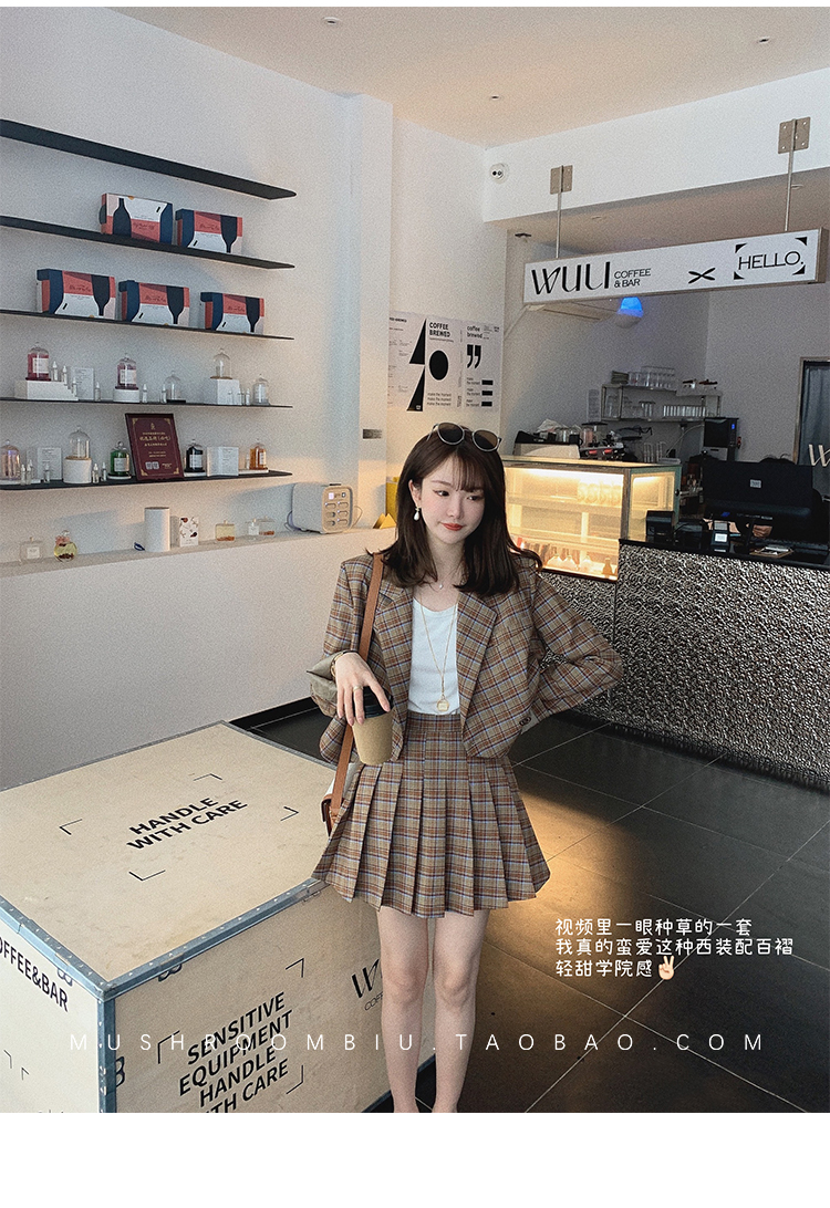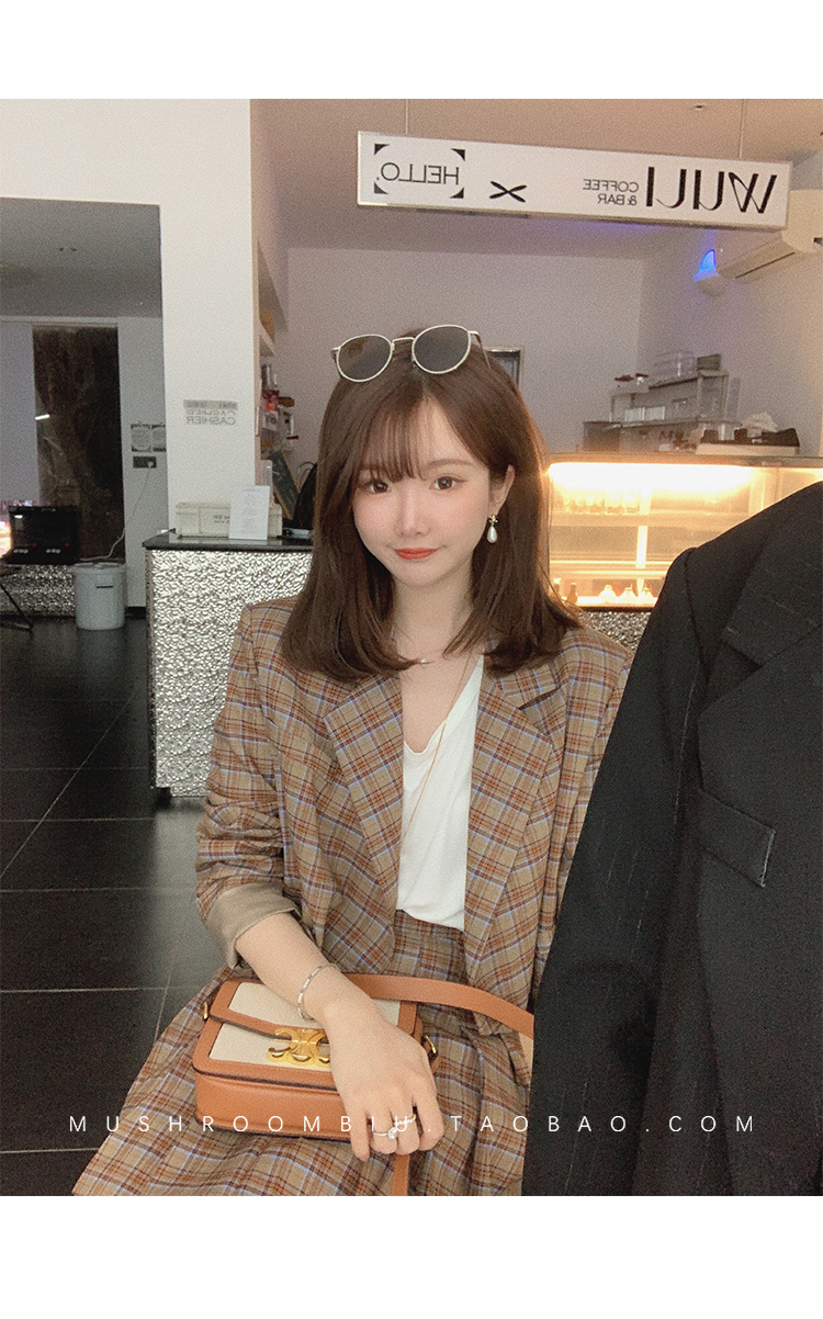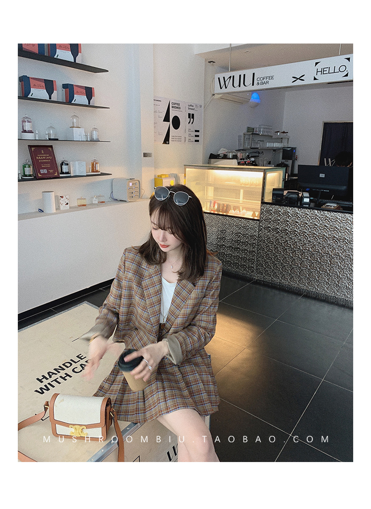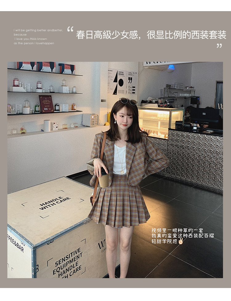 【金蘑菇菇 温莎日记~】春日少女感,学院风格子西装 搭配牛仔 或者半裙都很美~