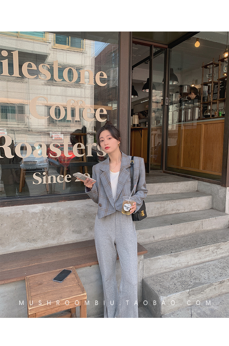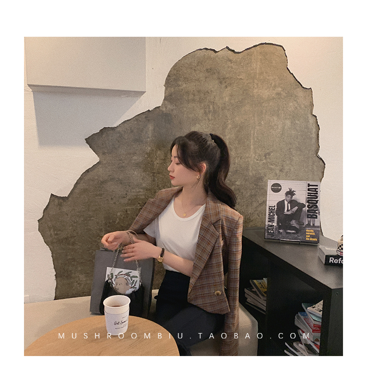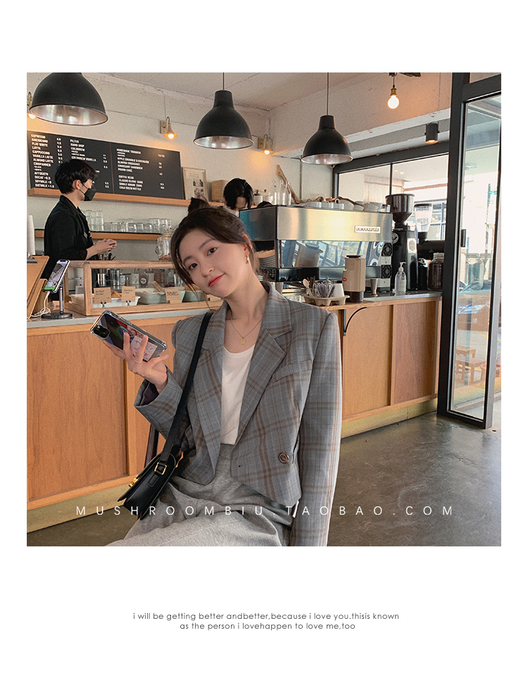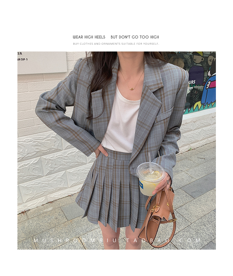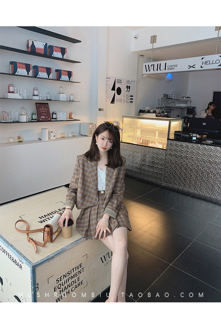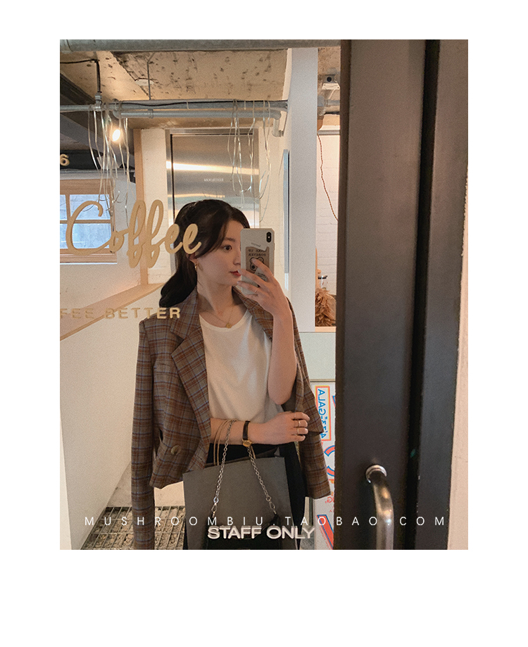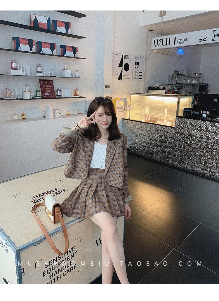 【金蘑菇菇 温莎日记~】春日少女感,学院风格子西装 搭配牛仔 或者半裙都很美~