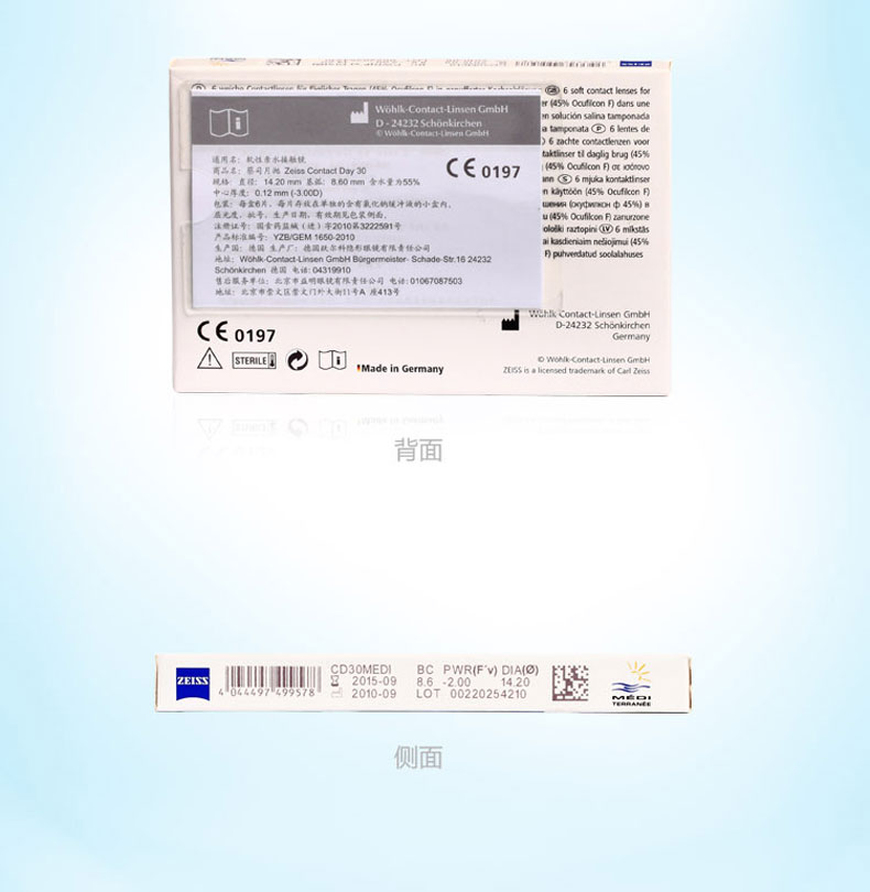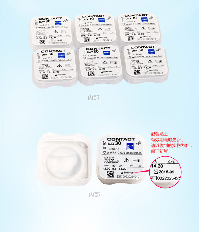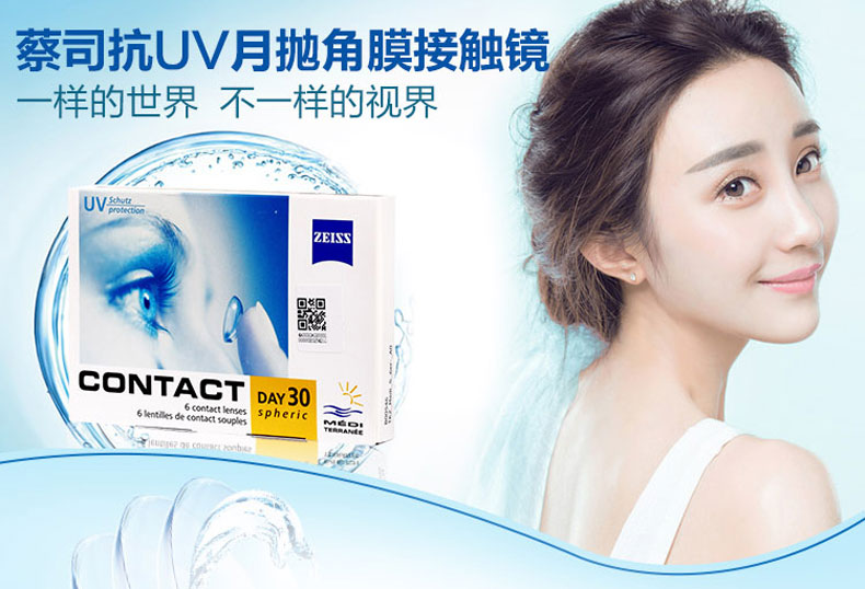 【透明月抛】德国Zeiss蔡司隐形近视眼镜月抛6片装水润透明进口高度数隐形眼镜1000度