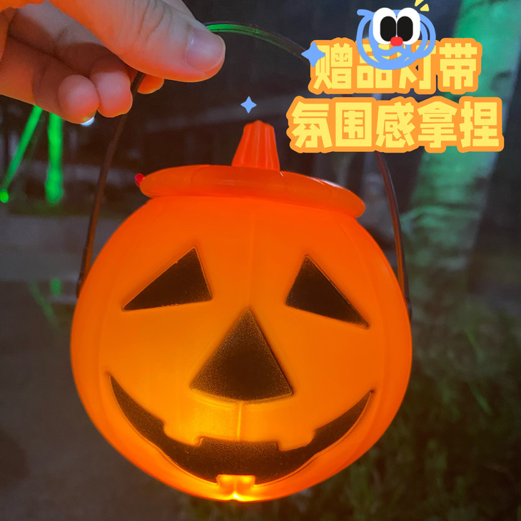 谈到万圣节必不可少当然是南瓜灯啊~~ 南瓜鬼脸的南瓜桶,圣节没有这个可爱鬼怎么行呢? 南瓜桶可手提,氛围感直接拉满!放入灯带拍照造型些分分钟出片! 一点也不恐怖~~可爱的南瓜桶,不仅可以装车子,还能装糖哦 快点带上南瓜桶出门讨糖吃吧~~让南瓜桶陪你狂欢这个万圣节~~