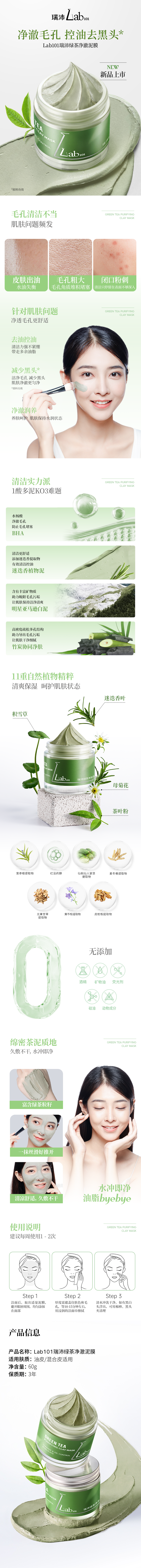 【新人专享 39/罐 59/2罐】Lab101瑞沛绿茶净澈泥膜/莲花亮颜泥膜60g
