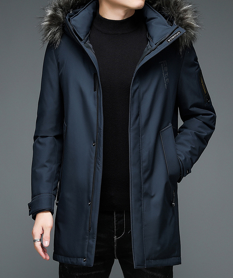 【男士羽绒服】冬季商务气质纯色可脱卸狐狸毛领羽绒外套
