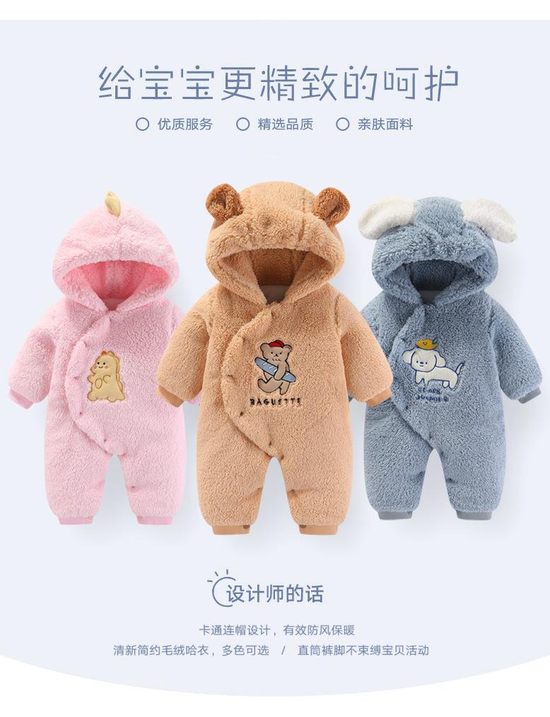 婴儿衣服冬装新生女宝宝连体衣满月超萌哈衣加绒加厚夹棉冬季外出