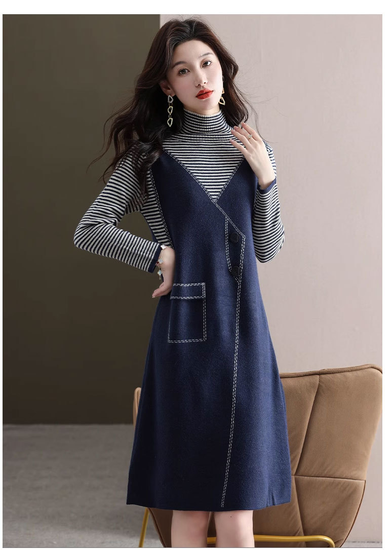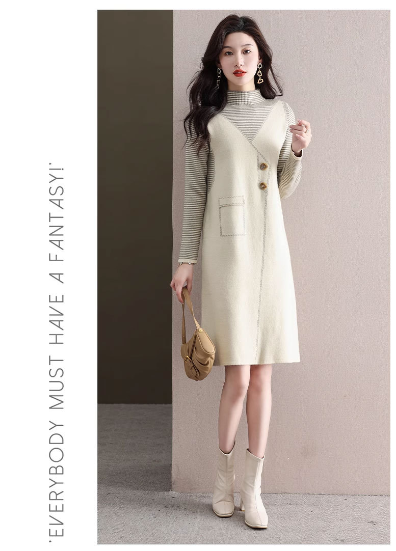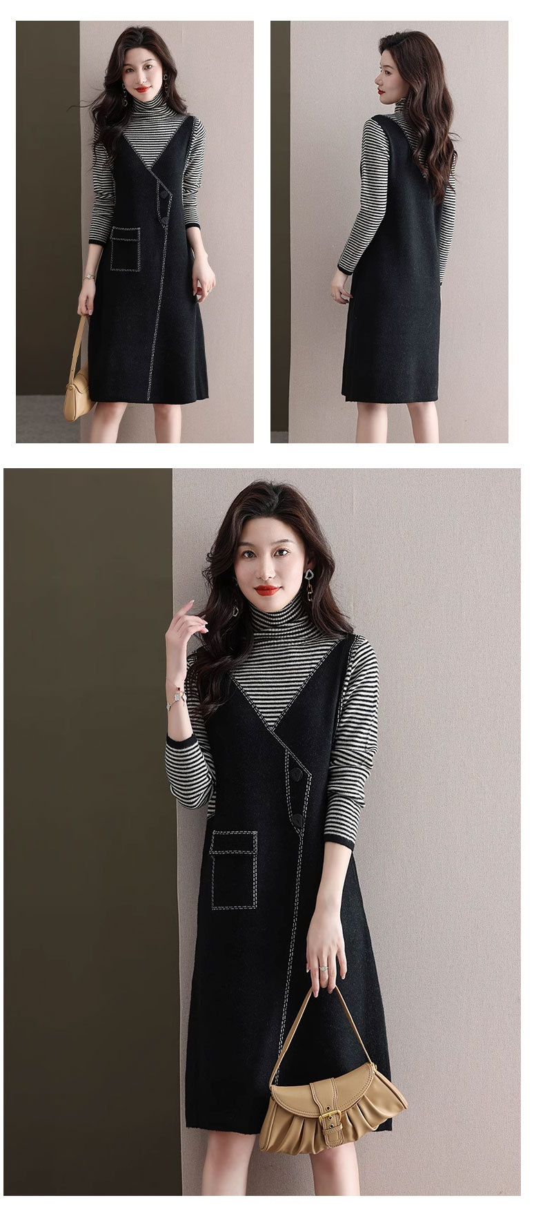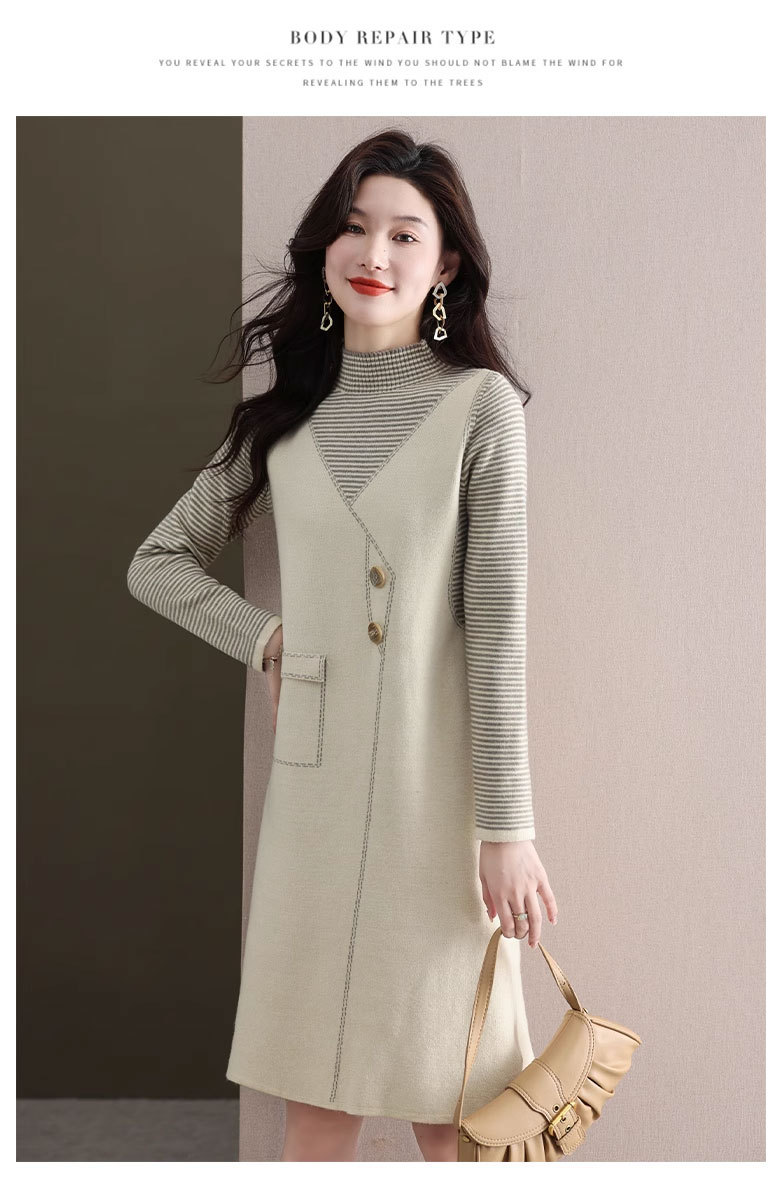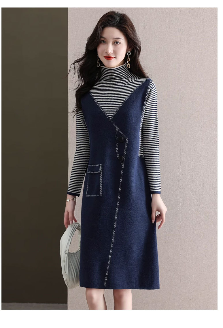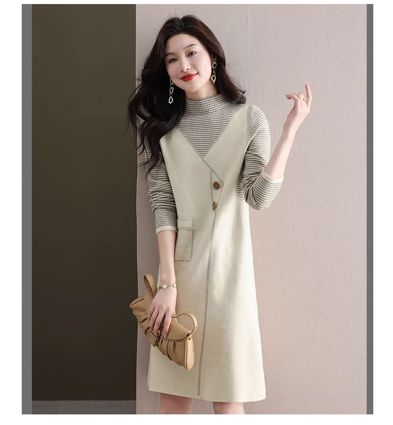 【配大衣连衣裙女】秋冬中长款针织衫假两件毛衣裙宽松内搭打底针织裙