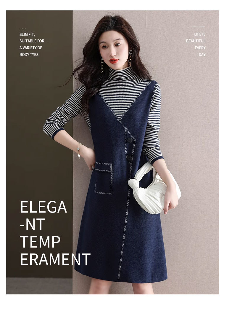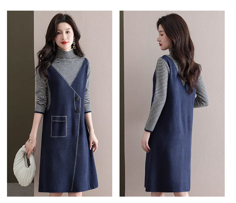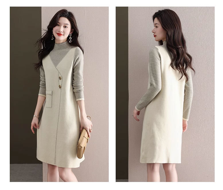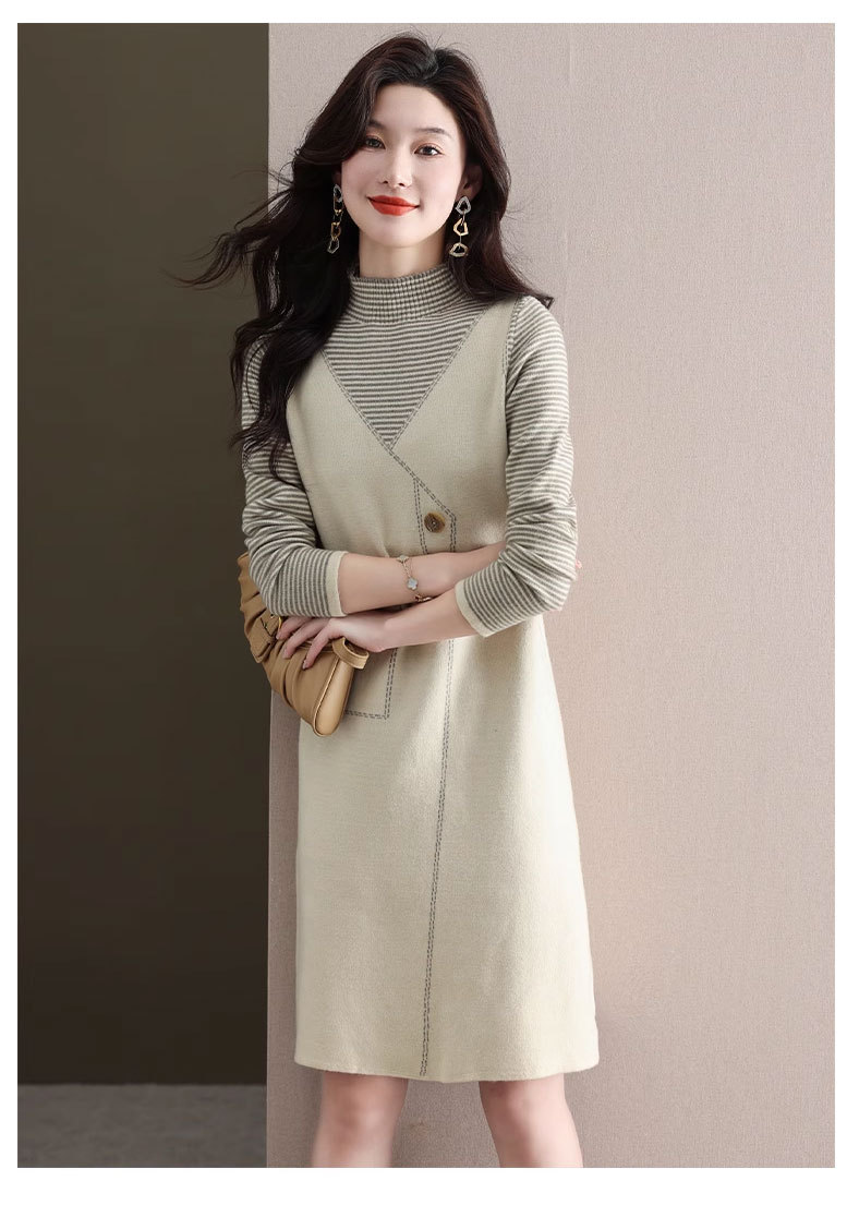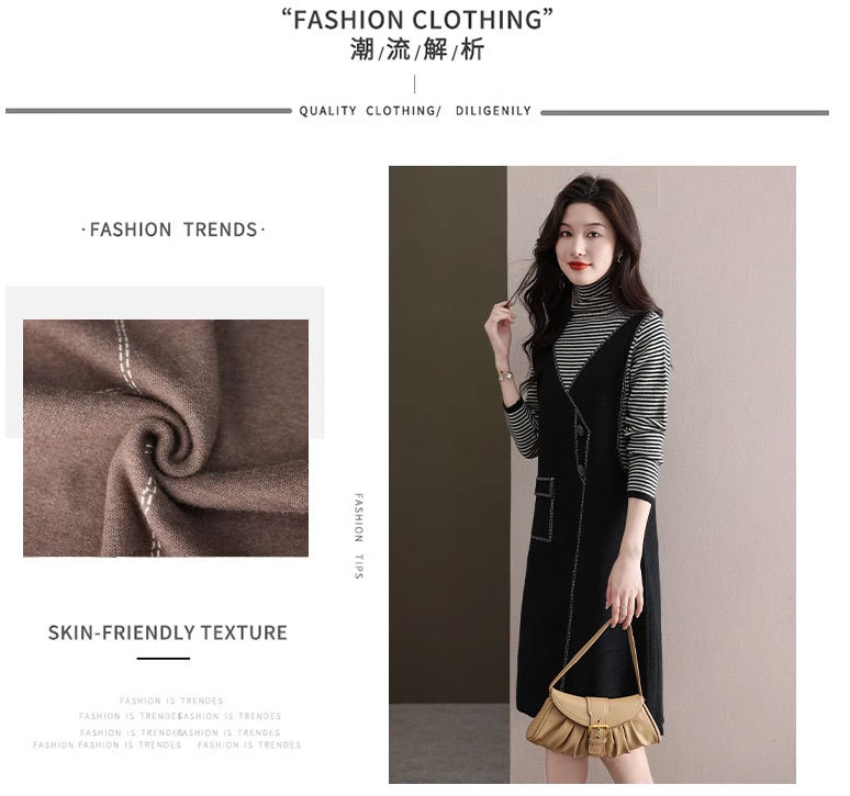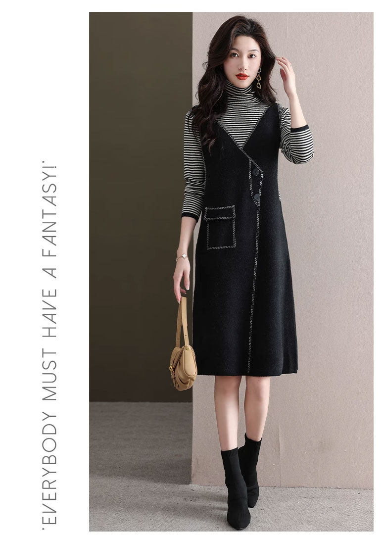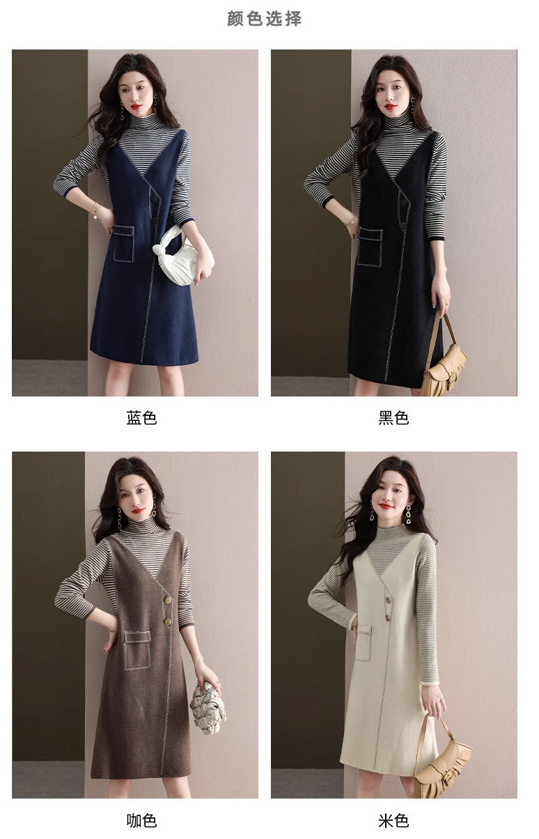 【配大衣连衣裙女】秋冬中长款针织衫假两件毛衣裙宽松内搭打底针织裙
