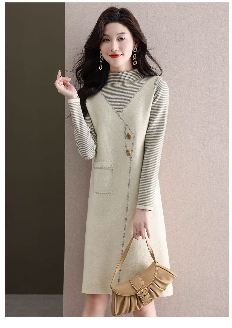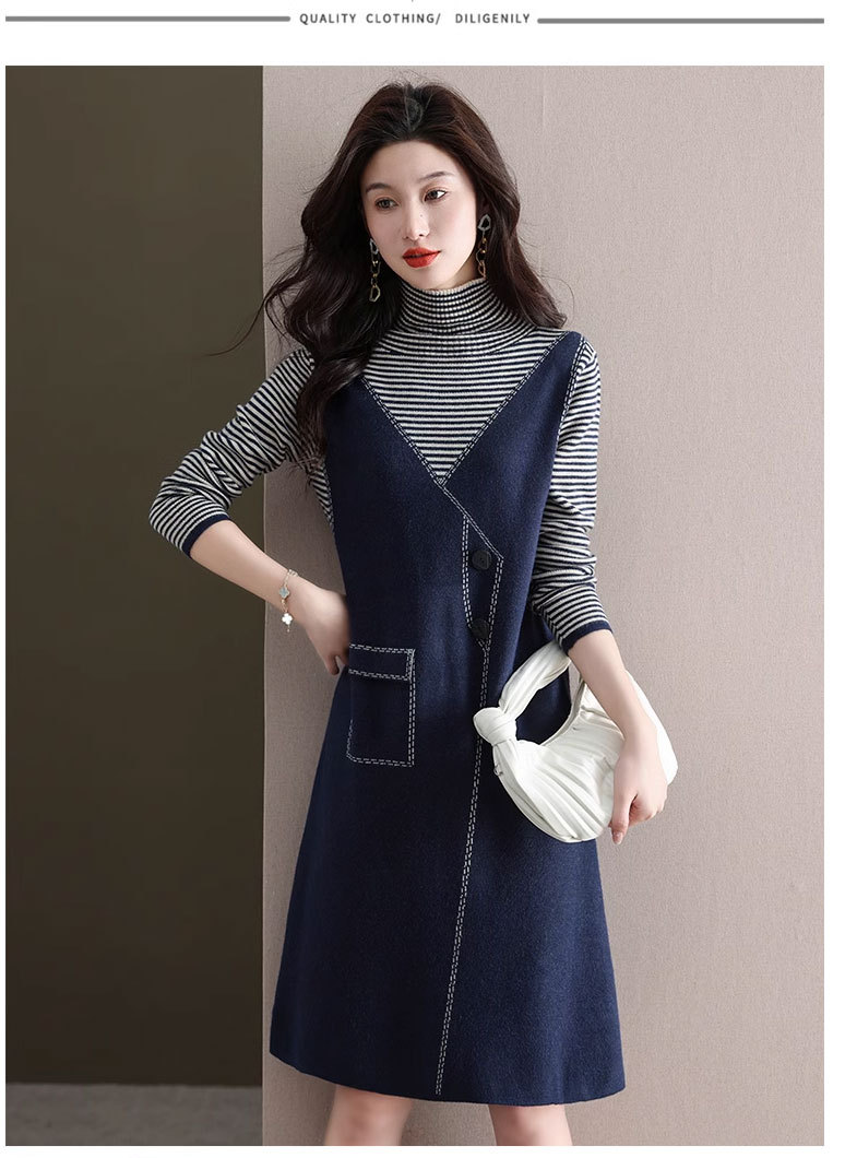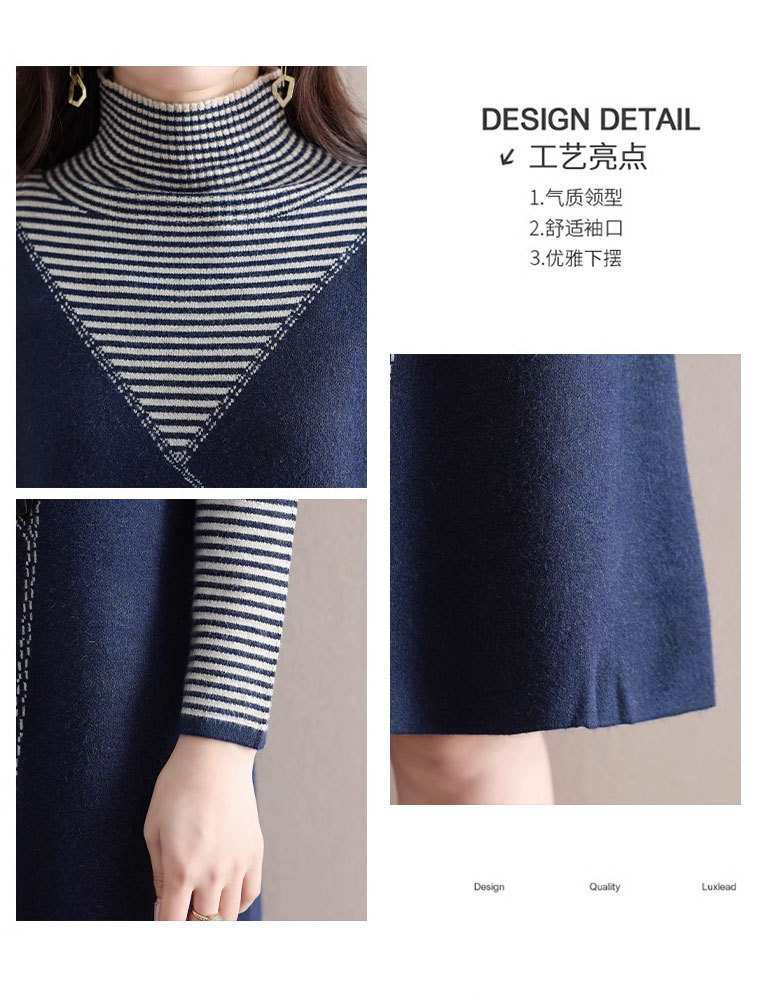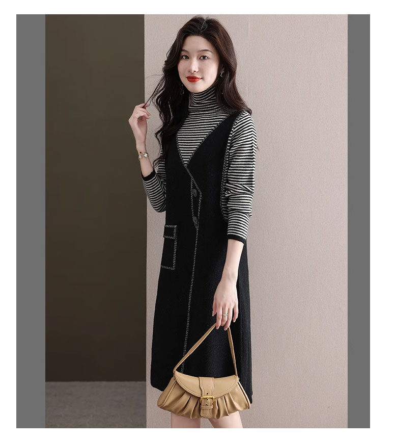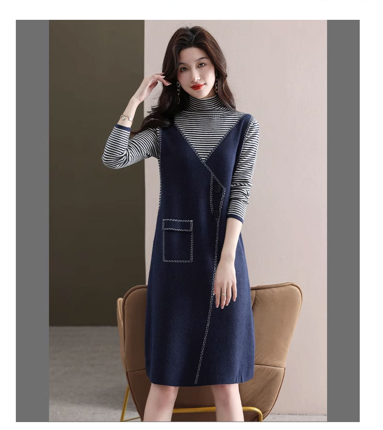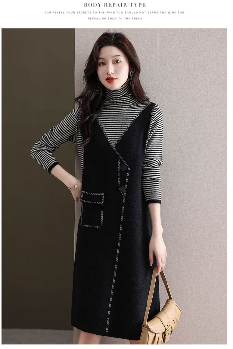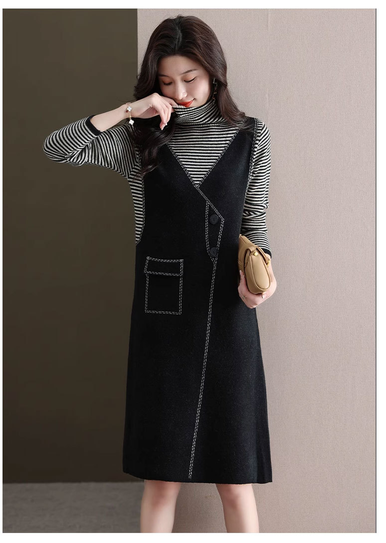 【配大衣连衣裙女】秋冬中长款针织衫假两件毛衣裙宽松内搭打底针织裙