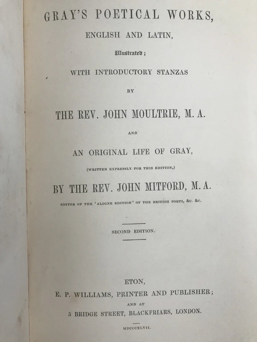 1847年 托马斯·格雷诗集 14幅木版画插图 漆布精装18开