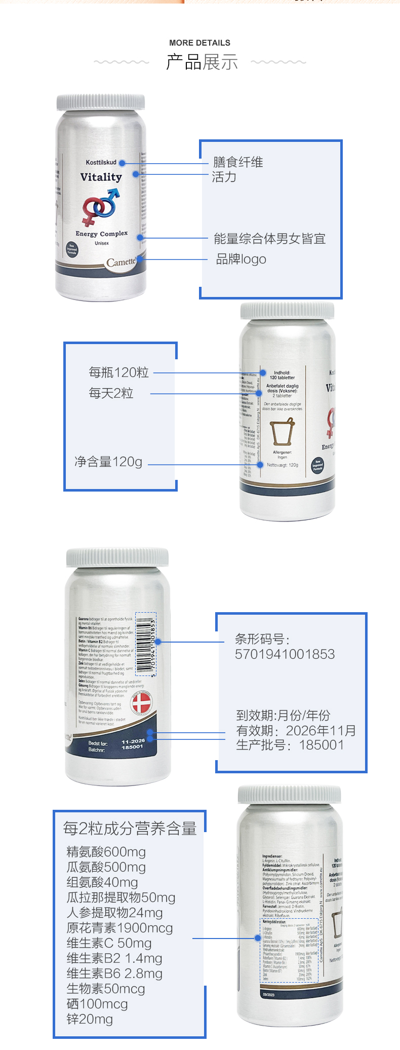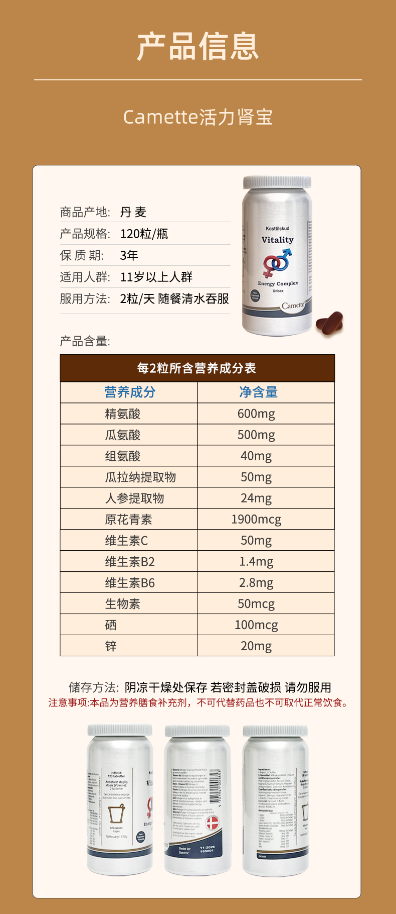 丹麦Camette凯麦特 新升级活力肾宝 120粒/瓶