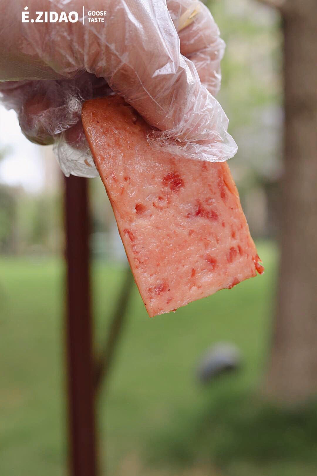 【鹅滋道 | 午餐肉】鲜肉制作,高比例的猪肉,肉颗粒明显可见,肉质扎实富有弹性,不软烂,不稀,不酸,不齁咸。油煎一煎,美味。